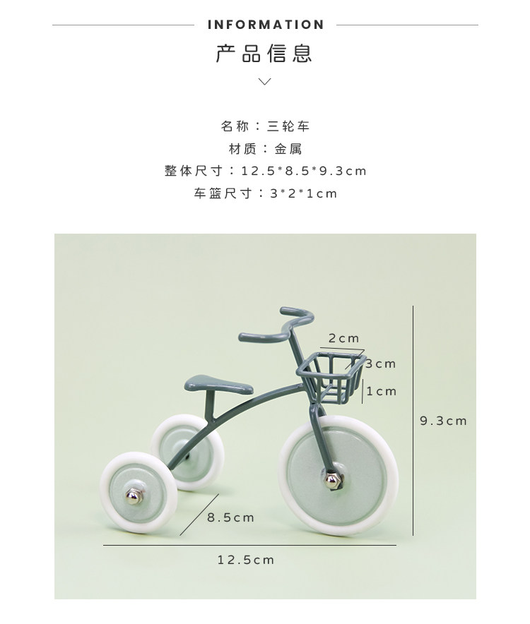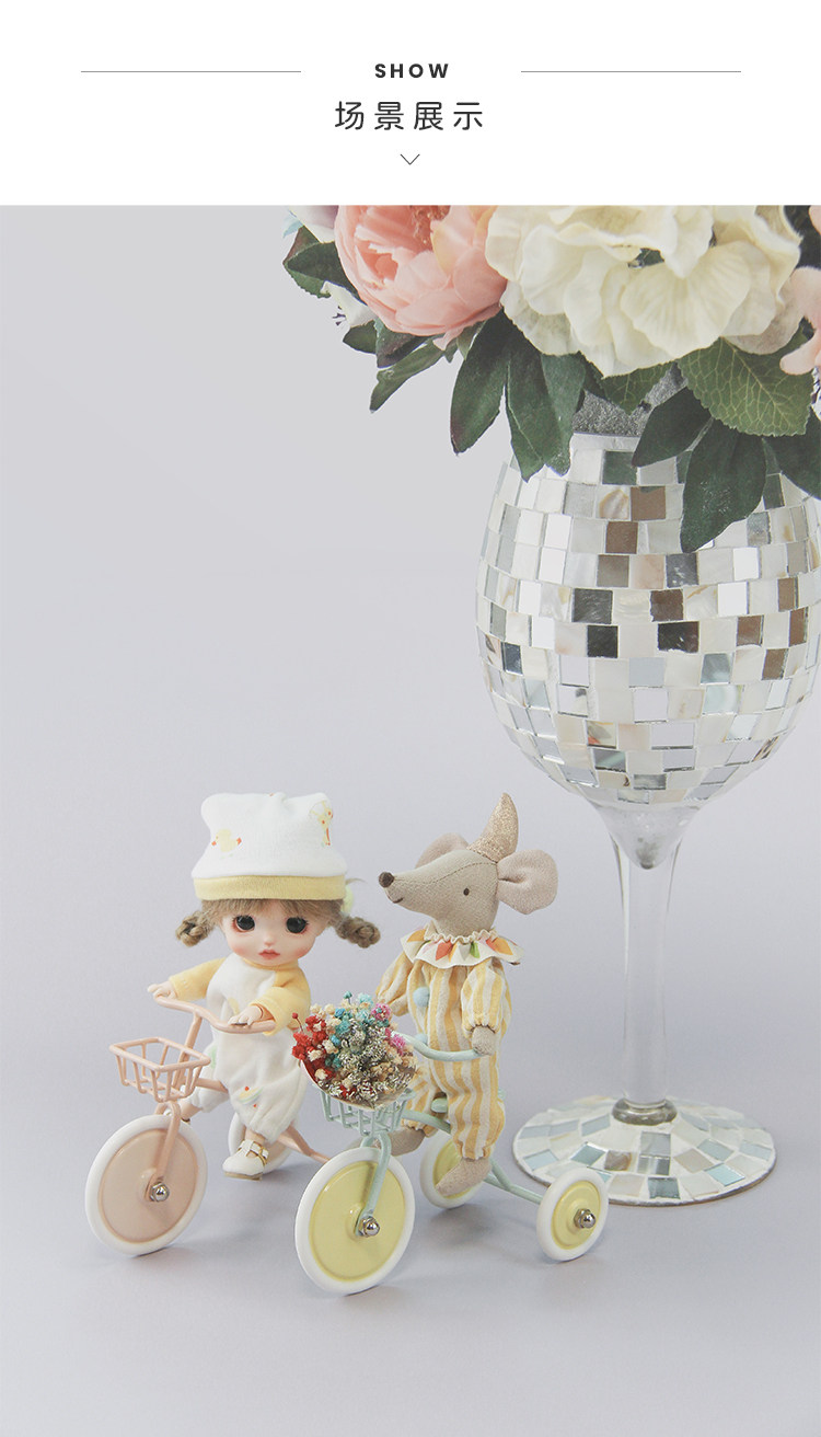 Мини-железный трехколесный велосипед в скандинавском стиле, 12 очков, 8 очков, bjd OB11 GSC, детские аксессуары для фото реквизита