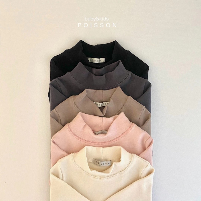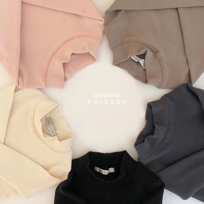 Товар в наличии корейский Poisson оригинал детские Мягкий высокая воротник длинный рукав Нижнее белье сплошной цветной рубашкой / верх Одежда