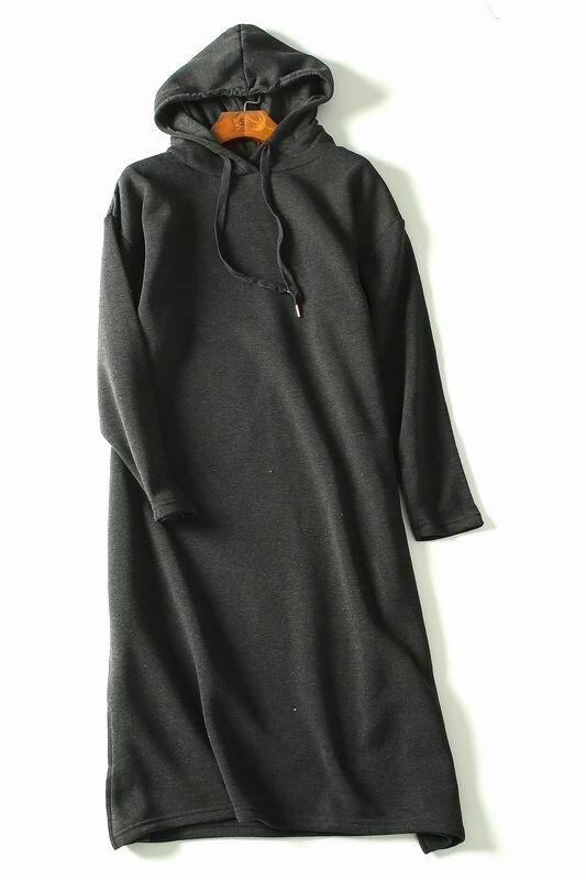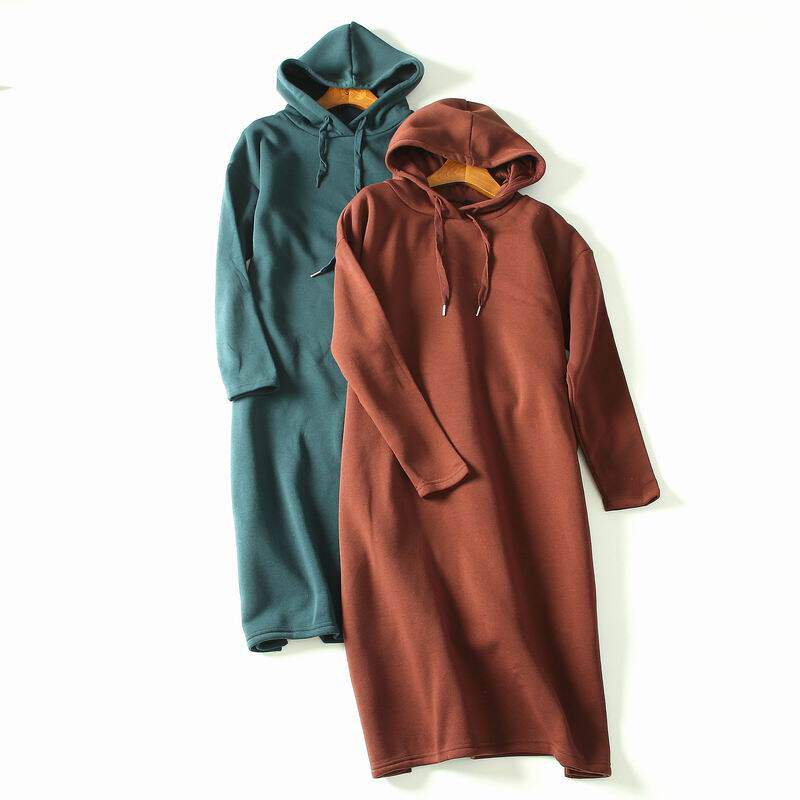 Для импорта осень-зима новая коллекция фасон средней длины стиль капюшон Платье женский твердый цвет замшевый толстовка Универсальный ленивый капюшон для отдыха стиль