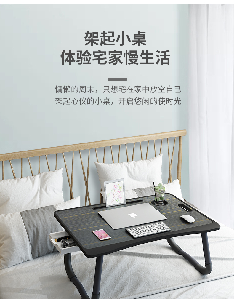 Кровать верх Настольный ноутбук со складыванием Домашний стол панель Общежитие верх Университет студентов пишет слово Изучение чтения книги гениальный ленивый девушка девушка подростковая спальня сидя простой маленький стол