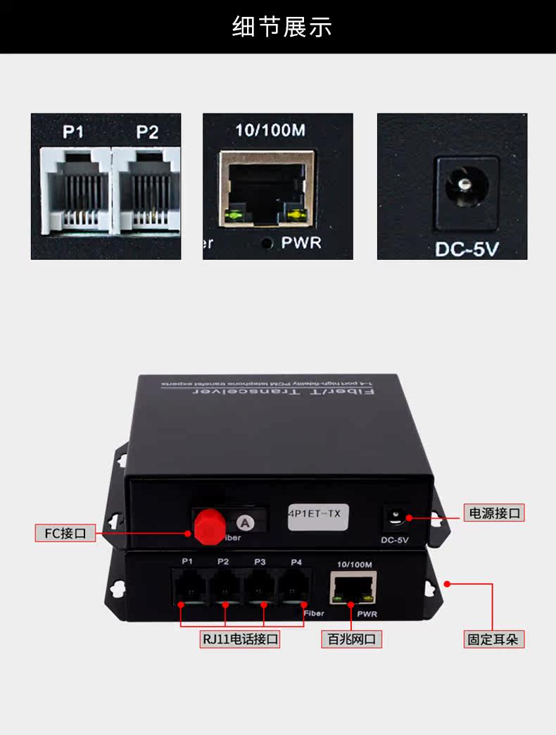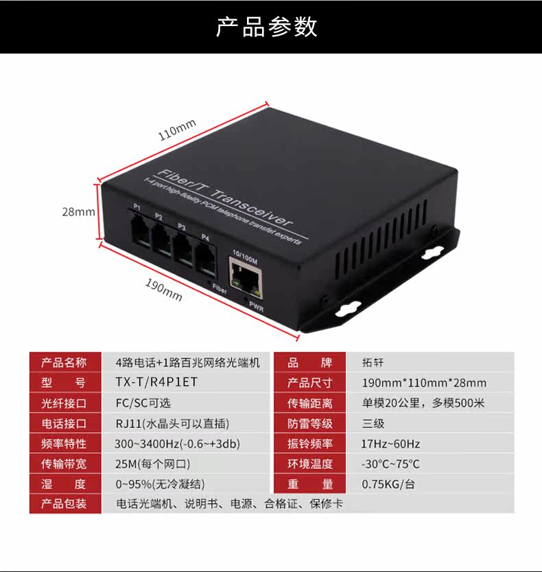 Телефонный оптический трансивер Tuoxuan 4 с 1 портом Ethernet 100 Мбит / с один Многорежимный универсальный интерфейс FCSC 20 км