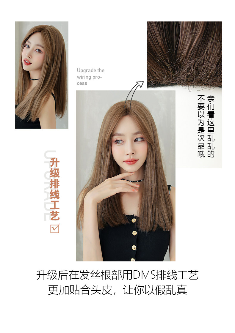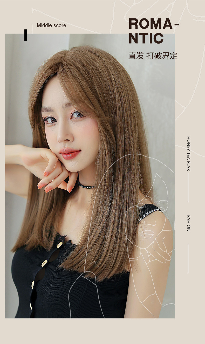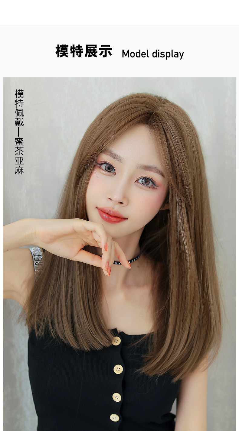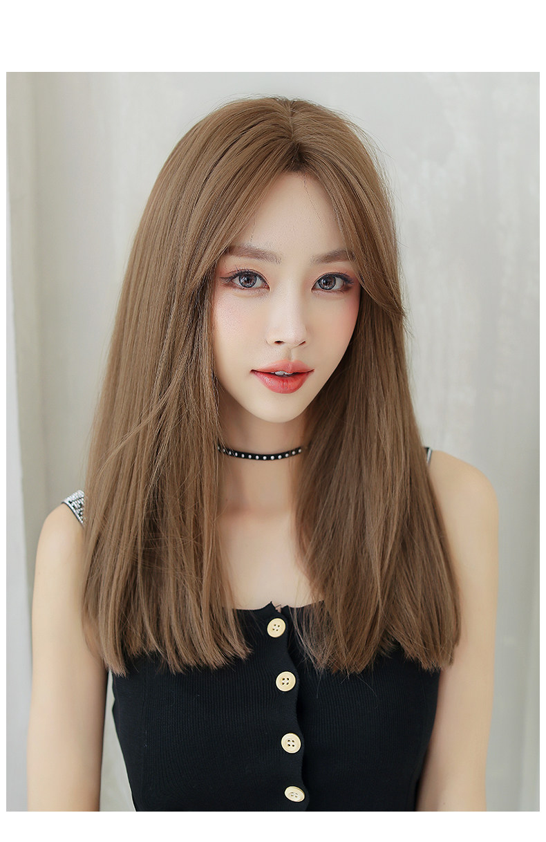 Парик средней точки женский длинные волосы длинные прямые волосы сетка красный без Челка прогрессивный фасон средней длины Естественный полностью Парик в стиле головного убора