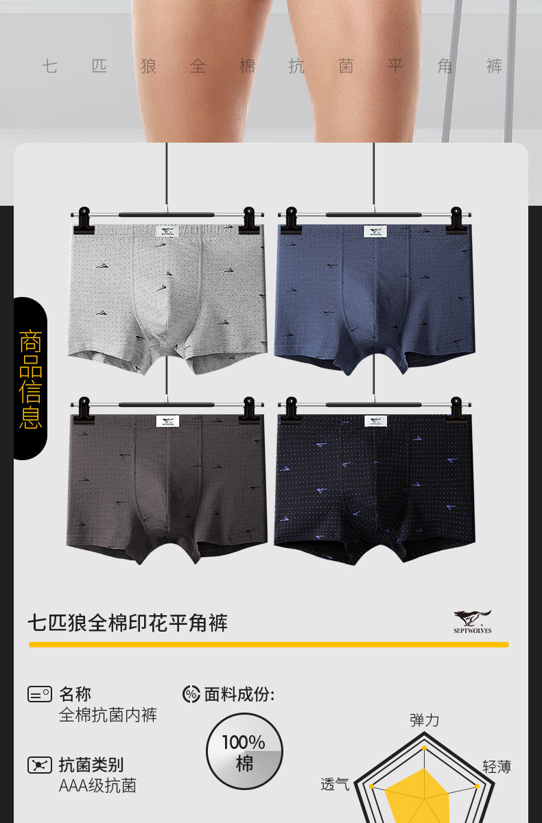 7 Волк мужской Нижнее белье мужской чистый хлопок боксер полностью хлопок Нижнее белье мужской Штаны антибактериальные шорты брюки