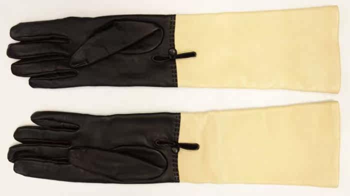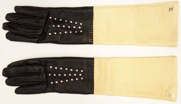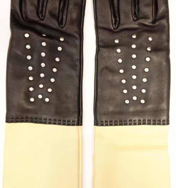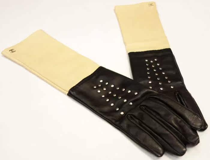 Шанель маленький логотип ударил щепы ногтей черный Метр из натуральной кожи перчатки 4