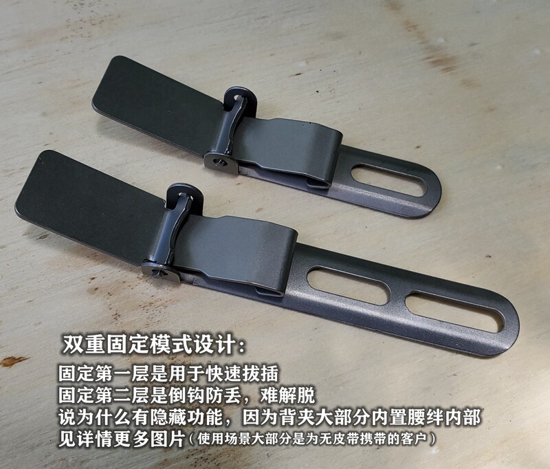 Функции:Плотно прилегающее приспособление, легкий и прочный задний зажим из титанового сплава K-образный зажим K-оболочка, широко используется в кожаных кобурах для инструментов и т. Д., Съемные и скрытые без Предназначен для ношения на ремне, двухслойный Фиксированный режим, опираясь на первый слой функции внутреннего крепления, второй слой прижима листа с застежкой (Слабее), имеет Длинные и короткие расстояния являются фиксированными и необязательными, материал из титанового сплава устойчив к коррозии, устойчив к ржавчине, прочен и легок, и т. новый Ваш оригинальный тяжелый пластиковый / стальной задний зажим.