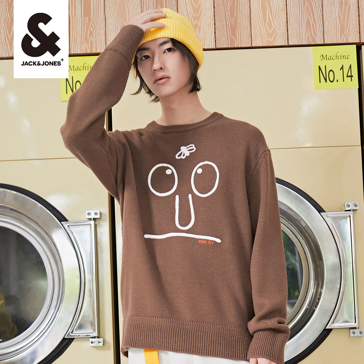 Джеки Джек Джонс 20 осень-зима новая коллекция модные Мультфильм плафон для влюбленной пары Свободный трикотажный Свитер свитер мужской