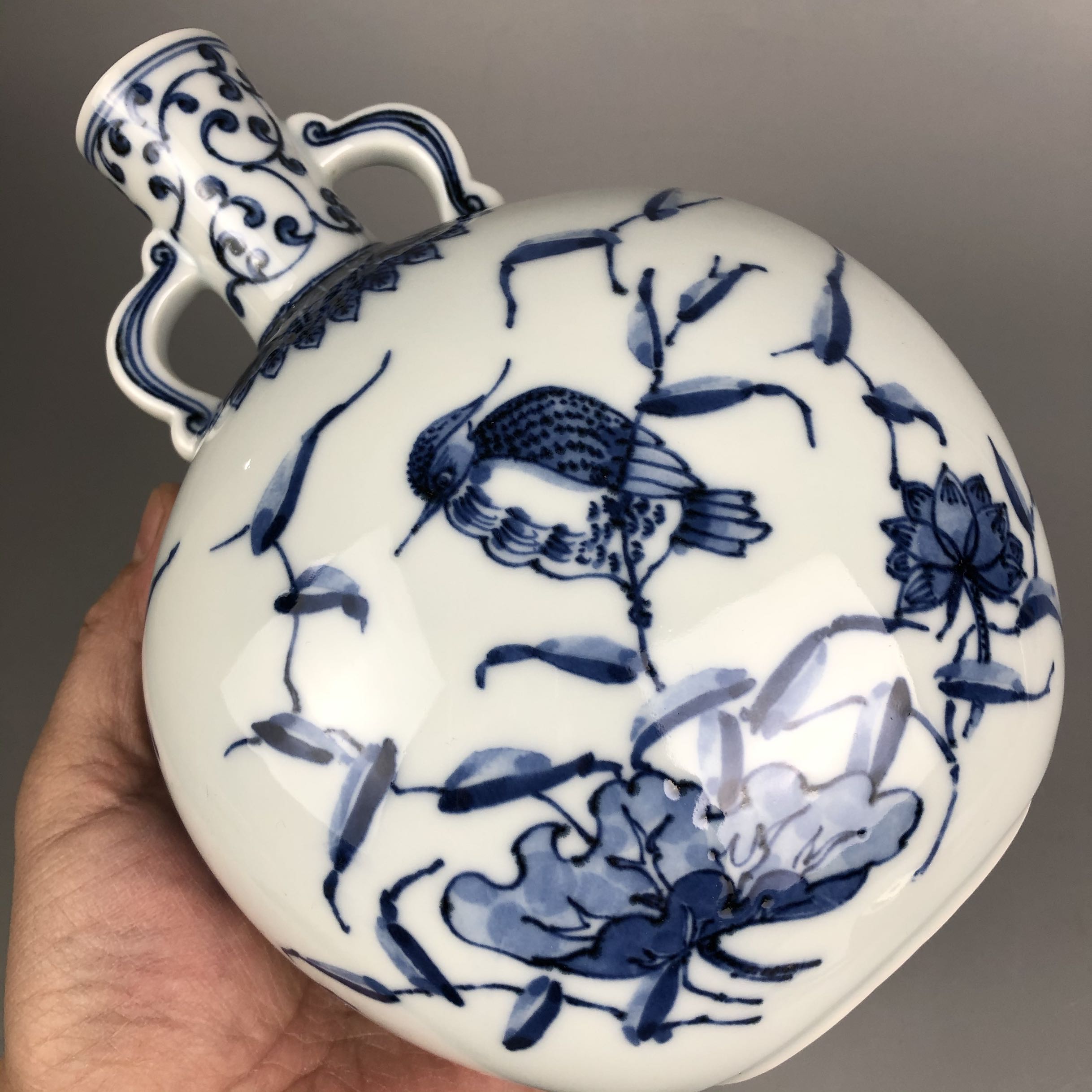 Японский рефлюкс Хэйан Татибана ручная роспись сине-белой водной птицы лист лотоса принт Бутылка, держащая луну высокая 19,5 см диаметр живота более 15 см ящик для бревен пакет Установить 600 метров SF бесплатная доставка по китаю