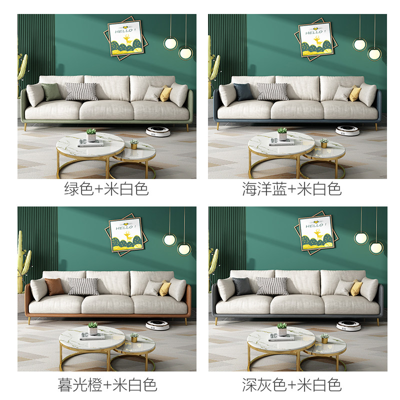 Light Luxury Technology Ткань Три Диван Маленькая квартира Nordic Гостиная Прямой Двойной Латекс Диван Простой поколение Бесплатно