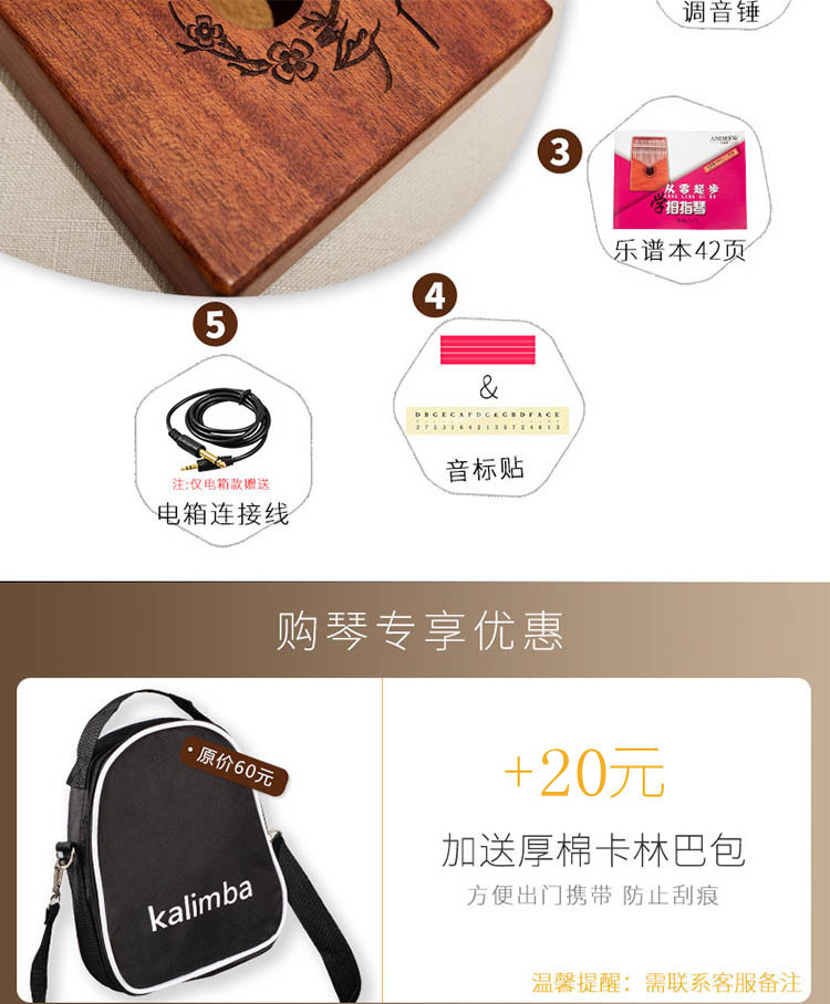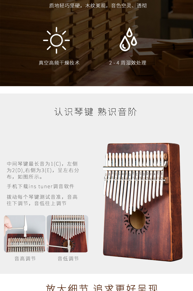 Новичок Kolk Kanqin Kalin Baqin 21 Music Love Match винтаж Ветровой большой палец пианино Акация деревянная ручка стиль девочка