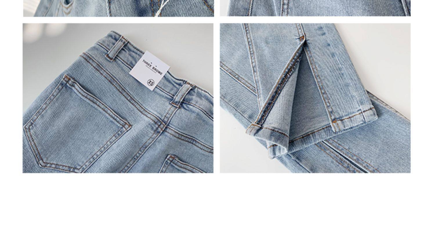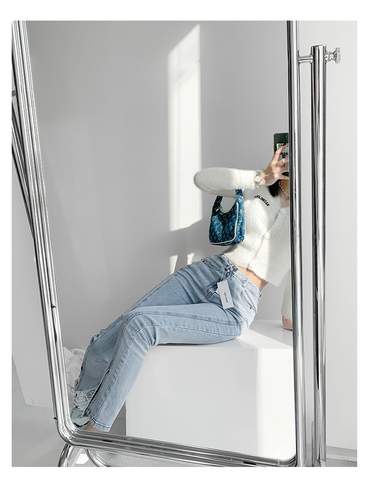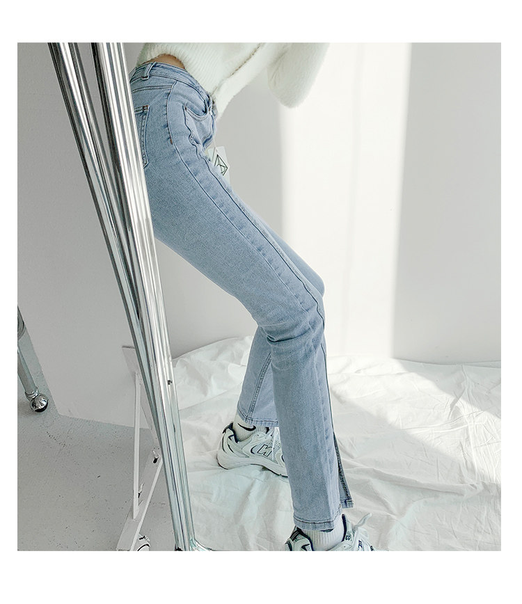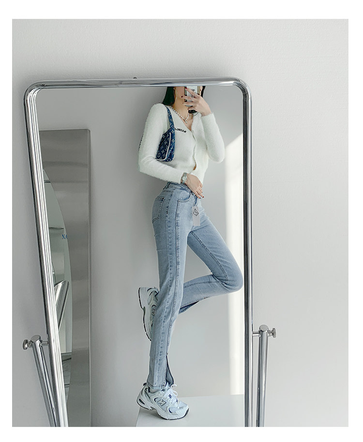 Lisa фасон унисекс эластичные Разделенная вилка джинсы женский демисезонный высокая Брюки-карандаш с эффектом потертости универсальный приталенный Брюки скинни