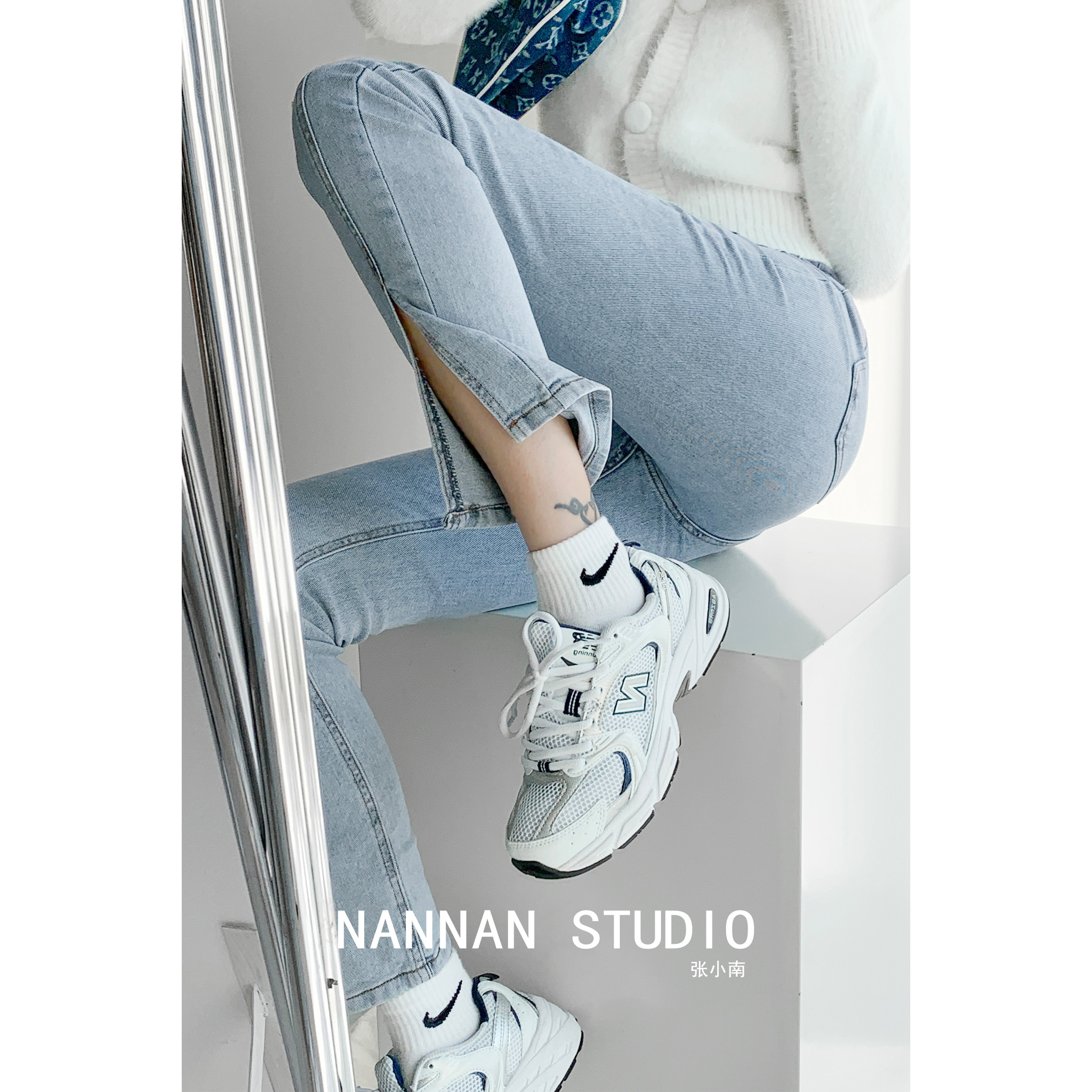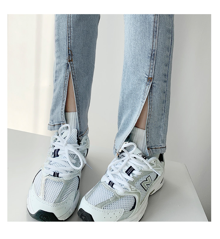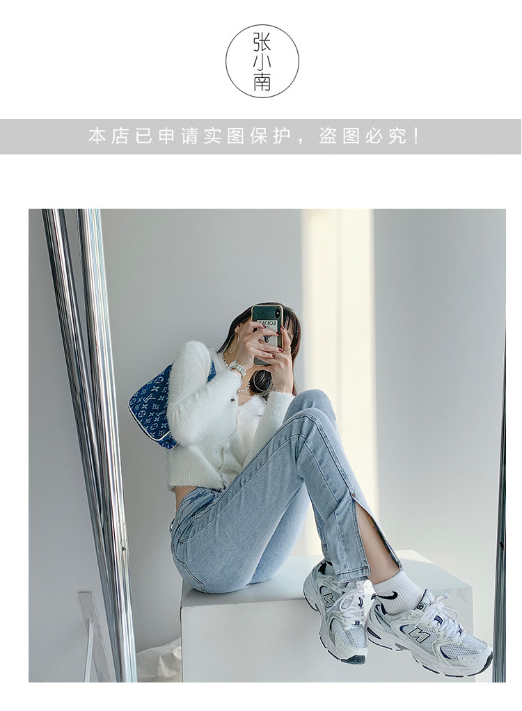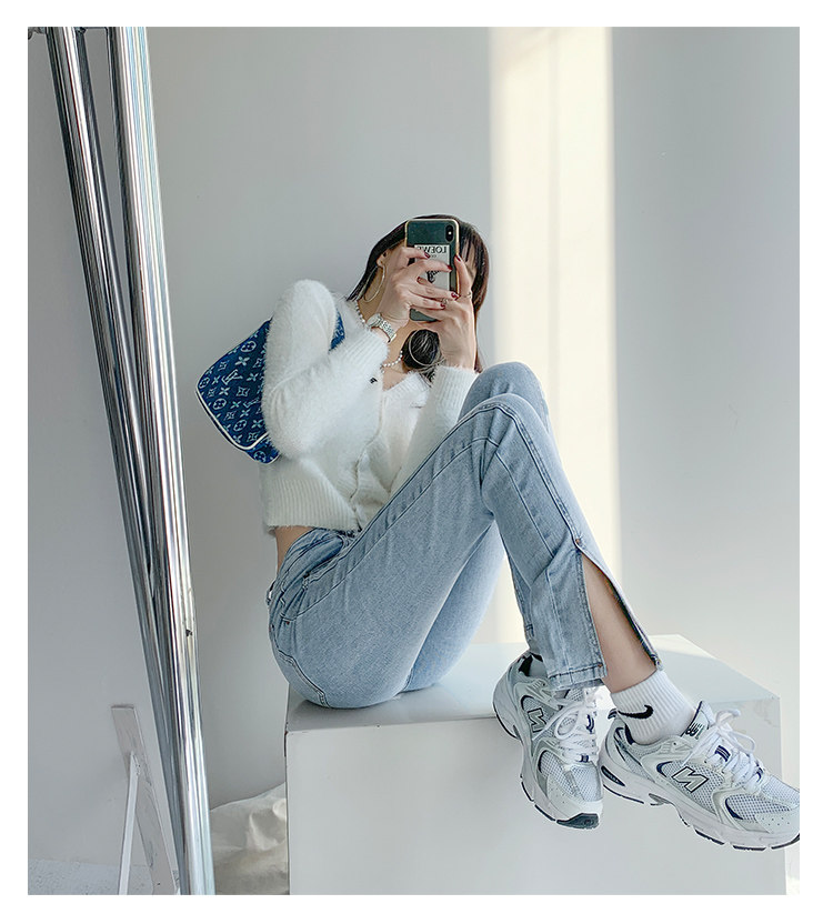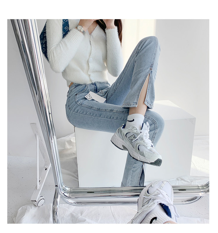 Lisa фасон унисекс эластичные Разделенная вилка джинсы женский демисезонный высокая Брюки-карандаш с эффектом потертости универсальный приталенный Брюки скинни