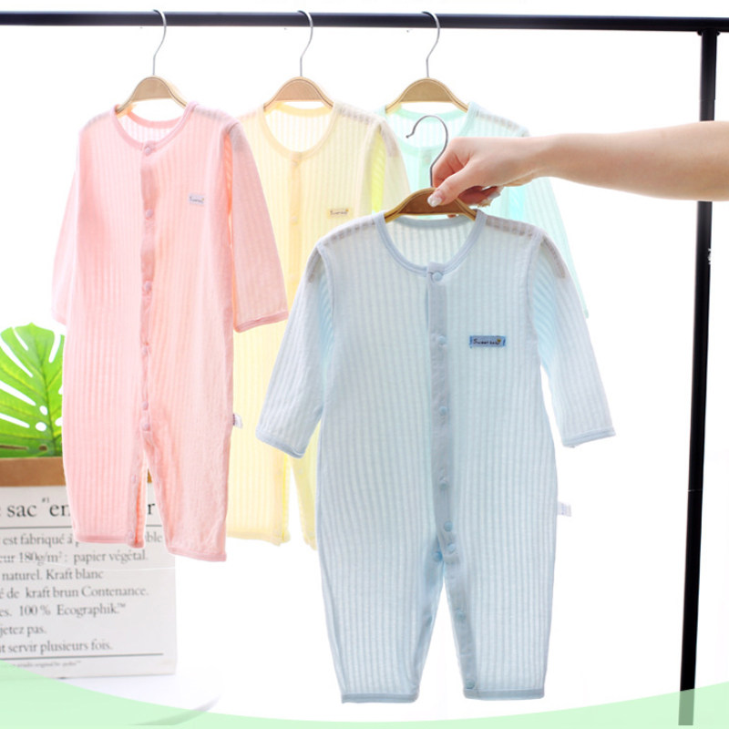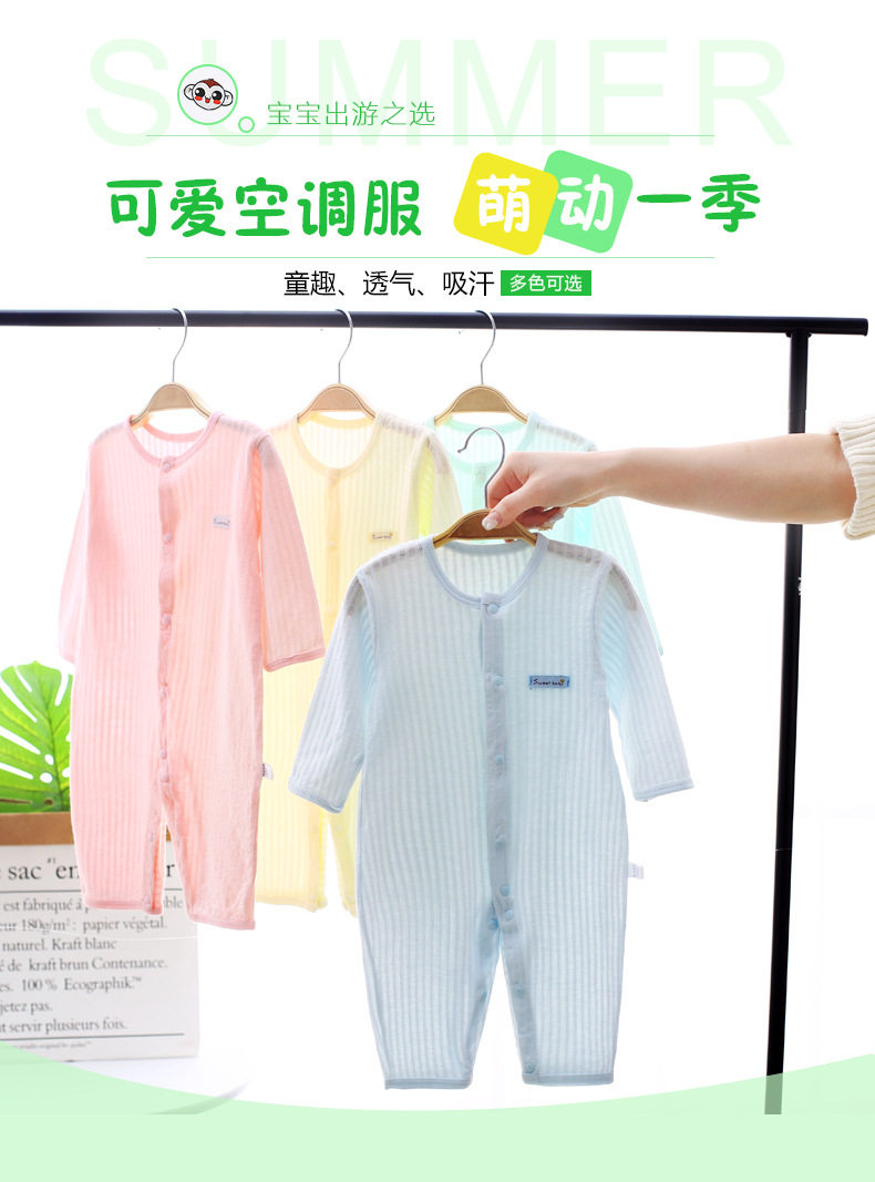 Детские Сплошной кондиционер на младенца Комбинезоны летом тонкие стиль одежда мужские и женские на младенца Летняя одежда чистый хлопок пижамы