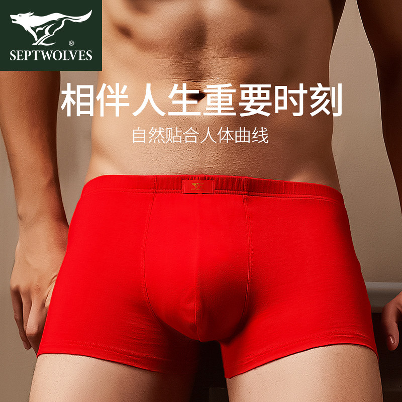 7 Волки мужской красный Трусики мужской насыщенно-красный Цвет трусов-боксеров относится к лету года быка. чистый хлопок шорты