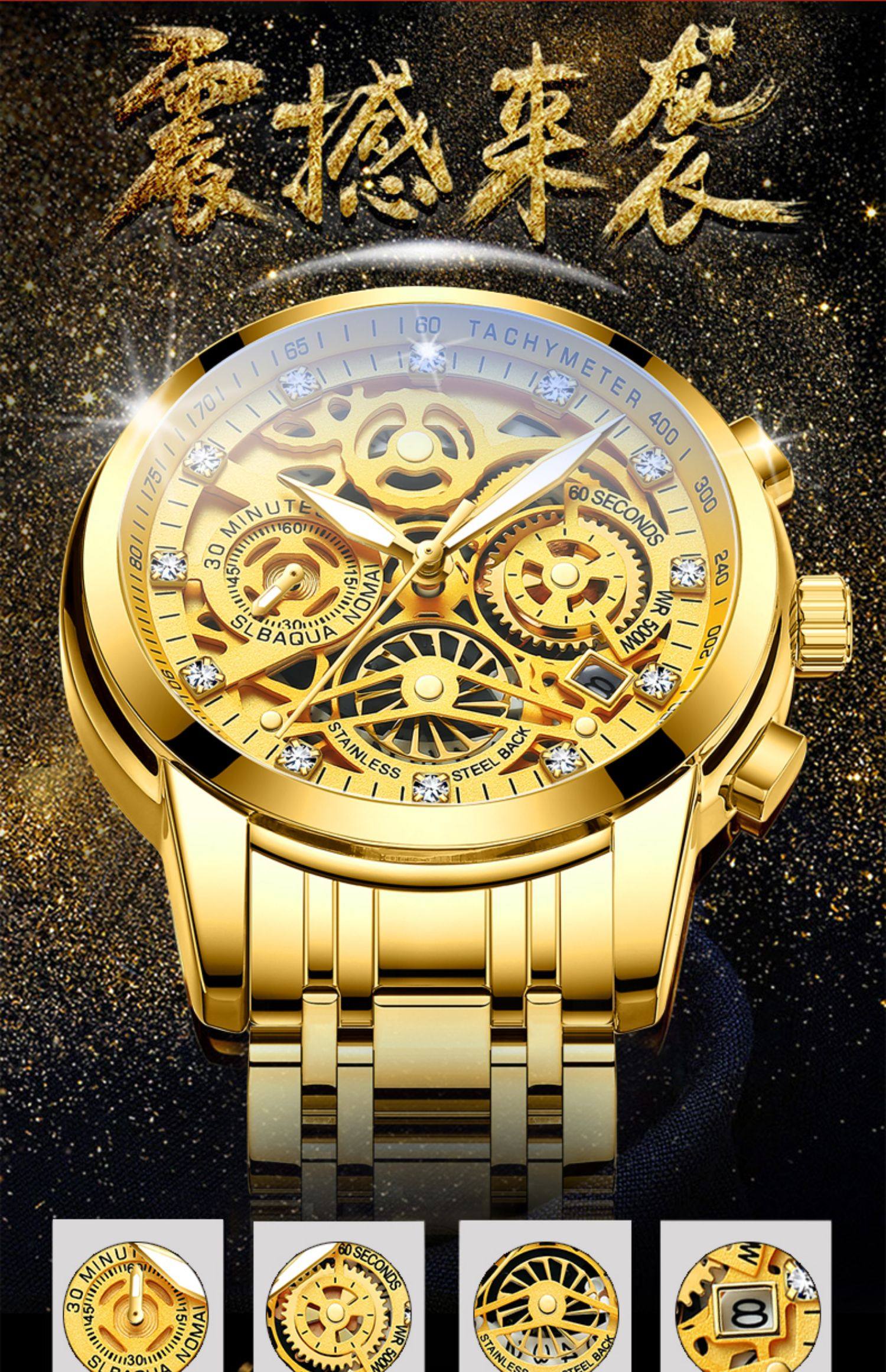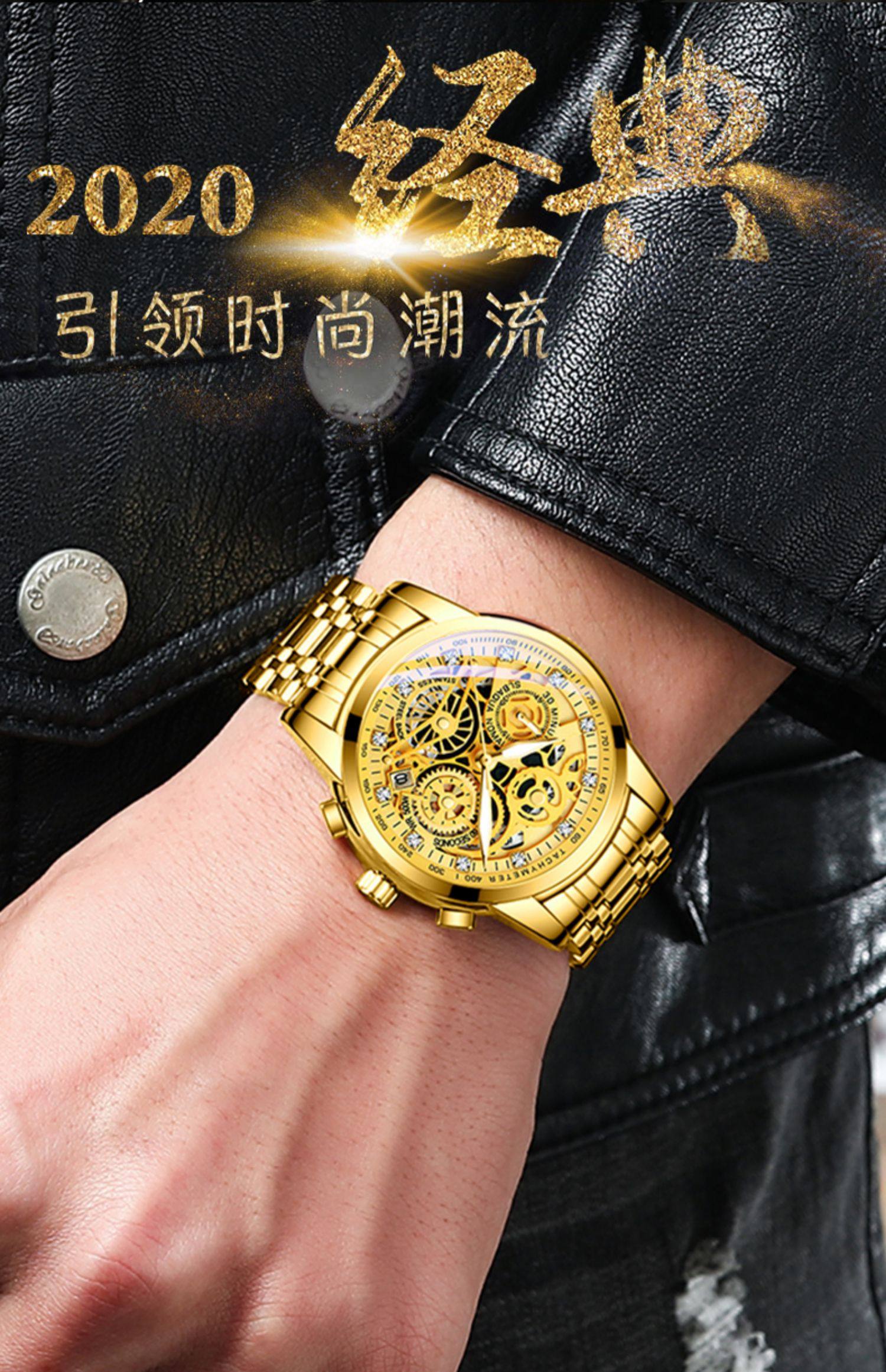 Оригинал Швейцарские часы мужской полностью Полые механические часы полностью автоматическая водонепроницаемый Ночной светлый кварц популярный мужской поверхность