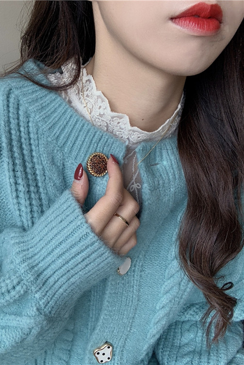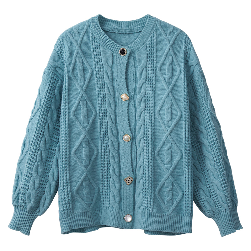 Голубой Свитер куртка Женский Твист Нежный Ветер Японский утепленный 2021 новая коллекция Тяжелая индустрия демисезонный трикотажный кардиган верх одежда