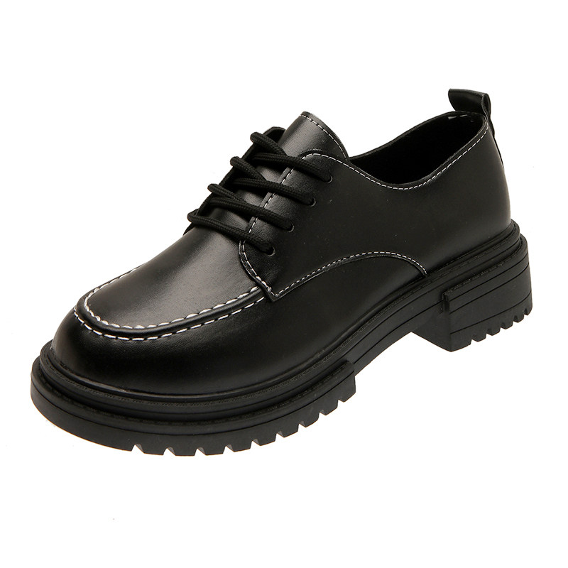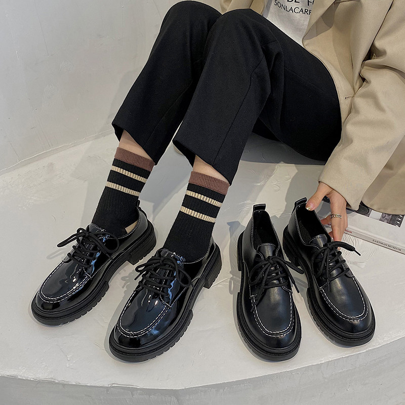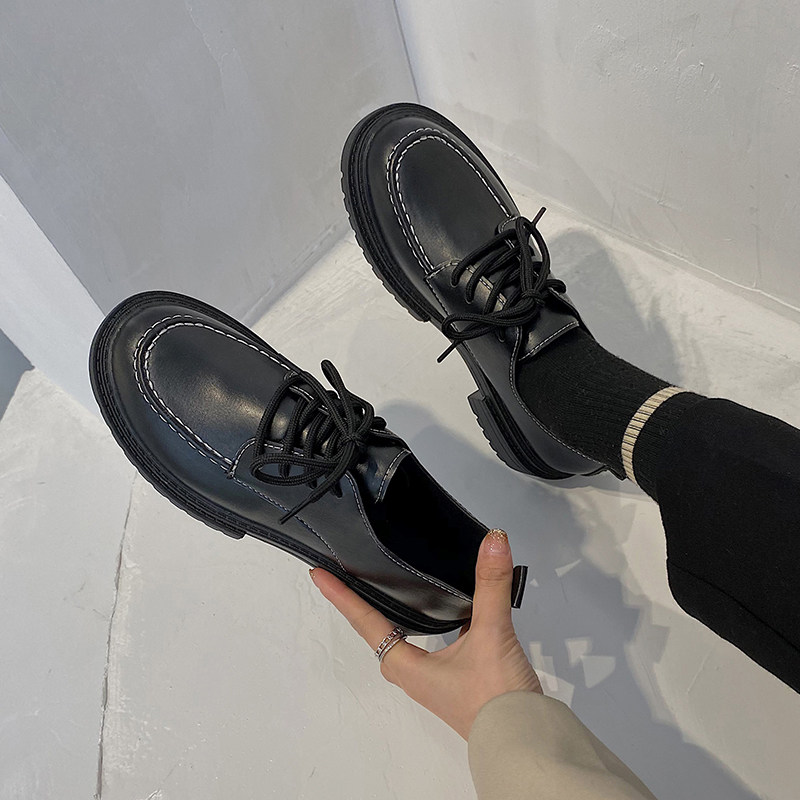 Винтаж Небольшой кожаная обувь Женский 2022 весна новая коллекция Дикий корейская версия черный винтаж увеличивать высокая толстая Внизу дна туфли сын