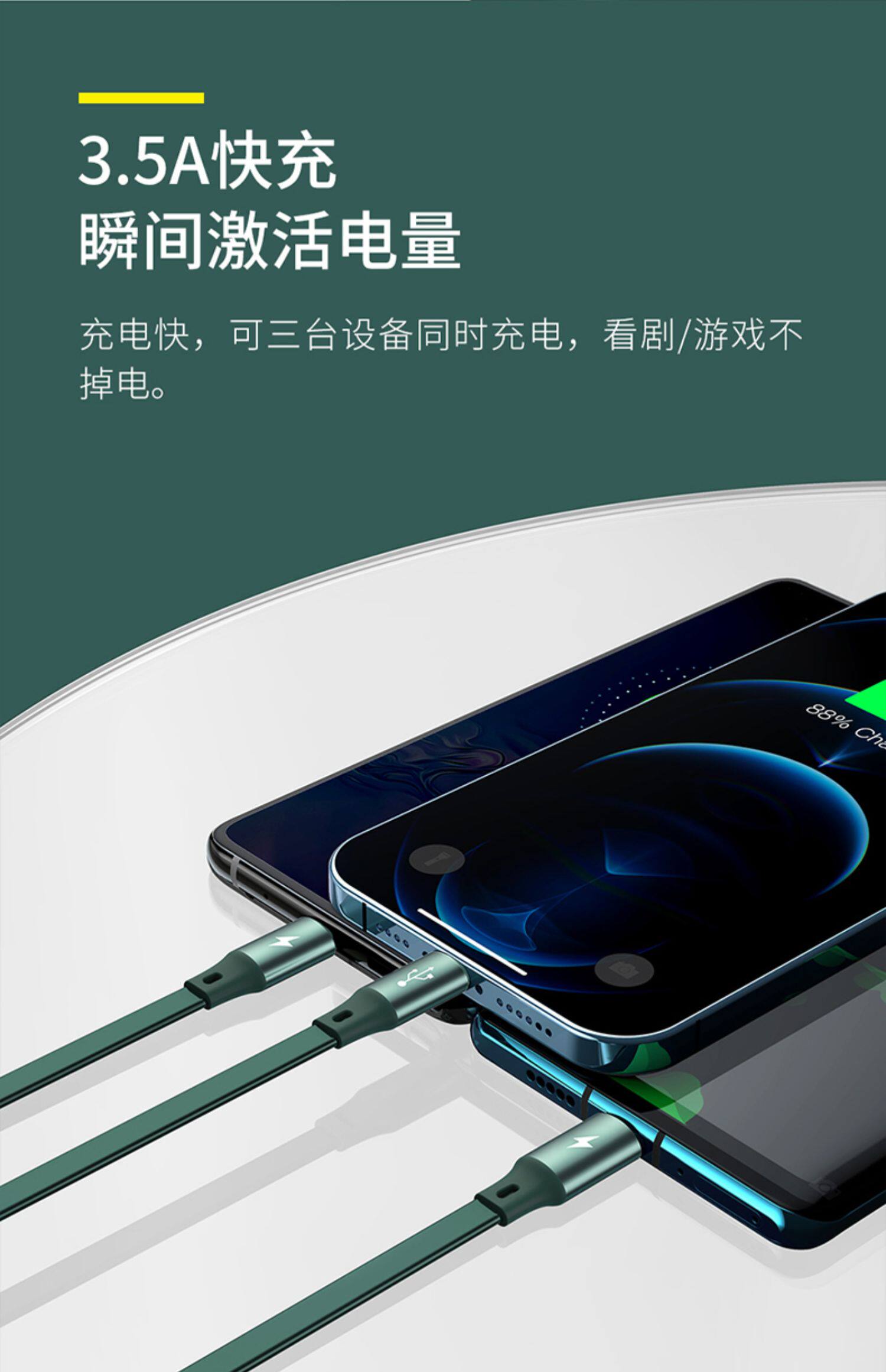 - Чернила зеленый 【Яблоко + android + TypeC.】Далее да да ◆ 66W быстрая зарядка ◆ 5 передач телескопических ◆ 1,2 метра