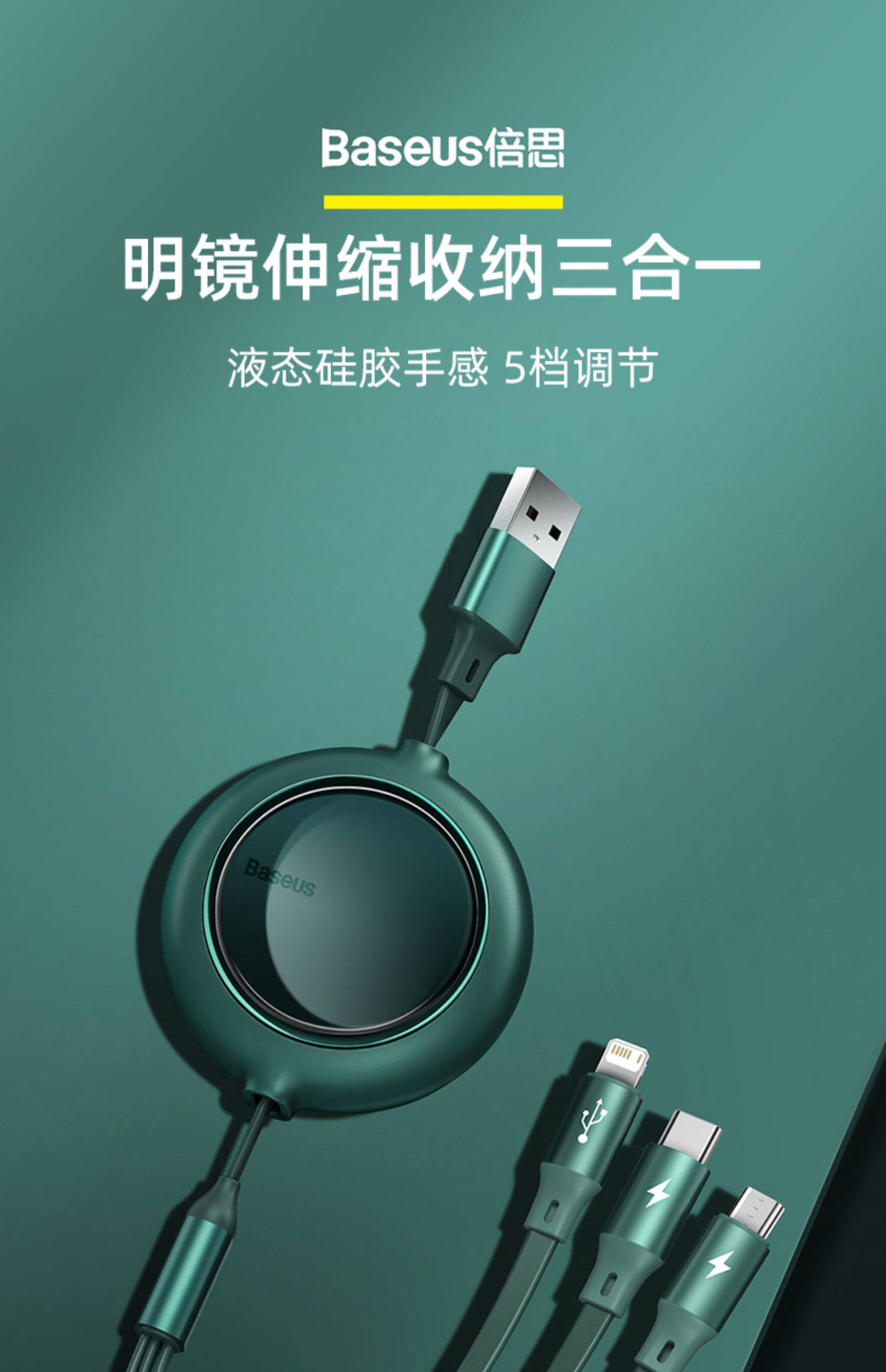 - Чернила зеленый 【Яблоко + android + TypeC.】Далее да да ◆ 5 выдвижной редуктор ◆ 1,2 метра