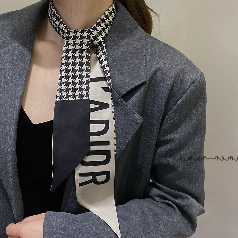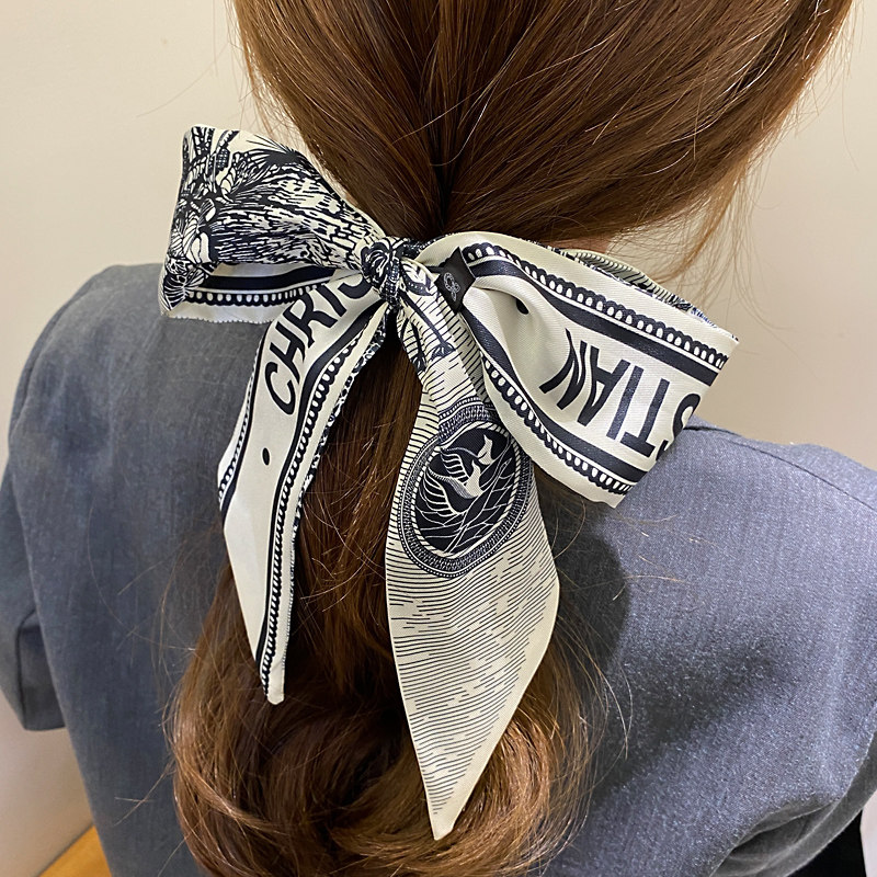 Нежить знает, что французские волосы птиц с шелковым шарфом узкий Небольшая длина полосатый винтаж прогрессивный Ins связывать ленточный галстук головного платка пакет