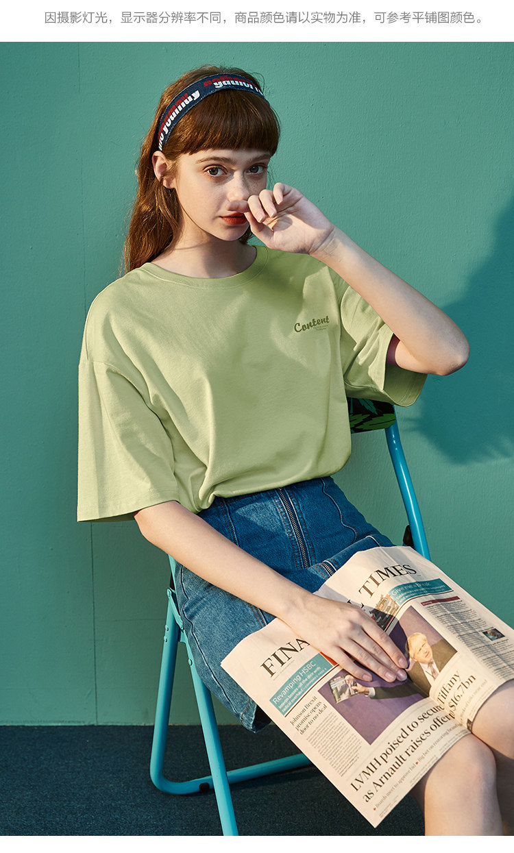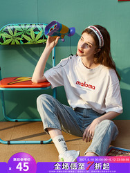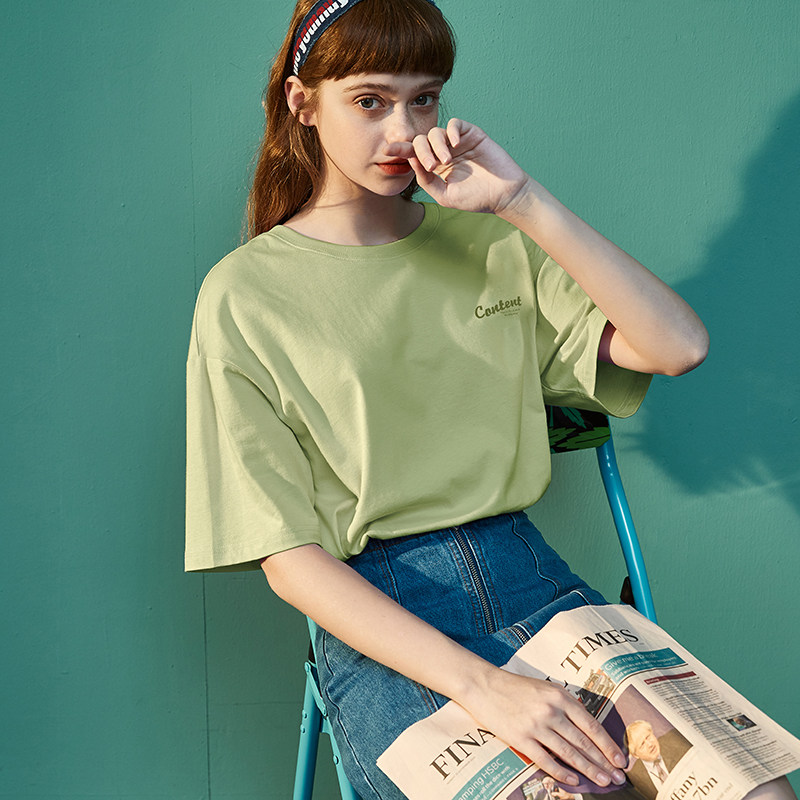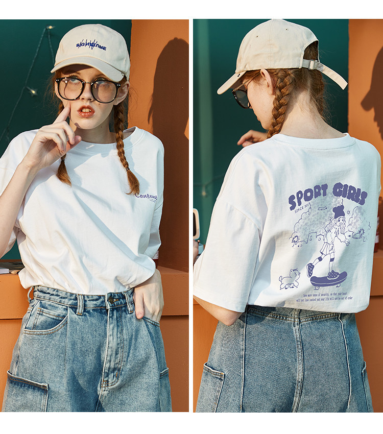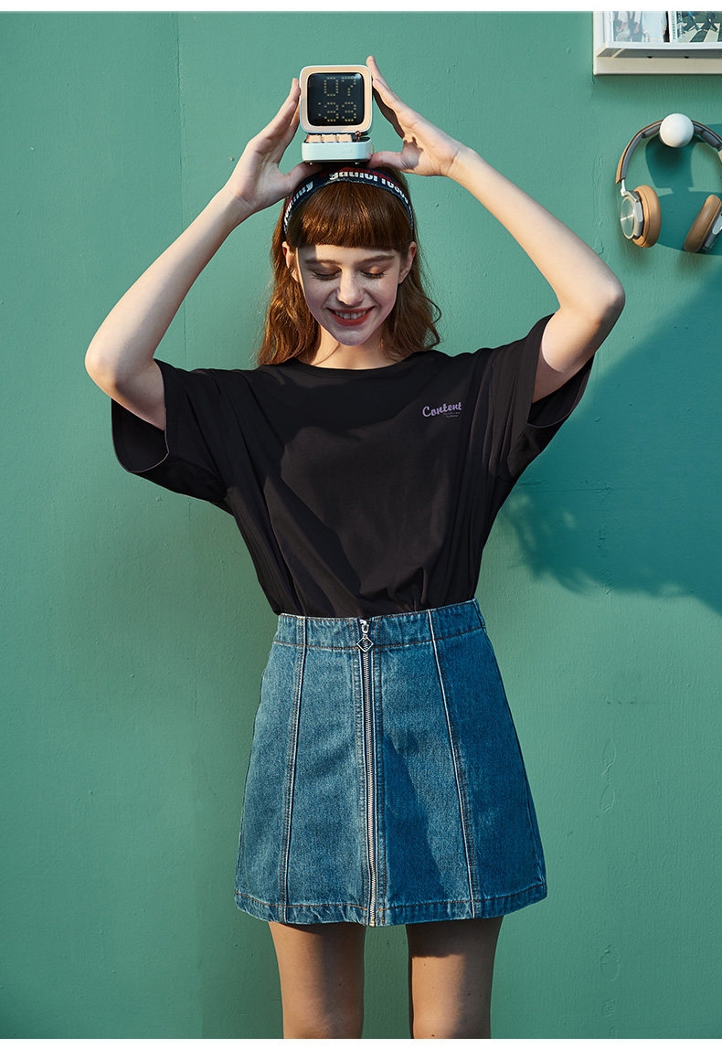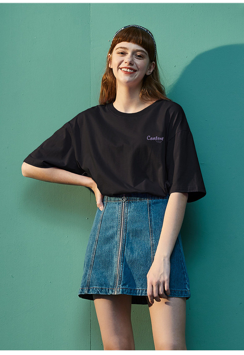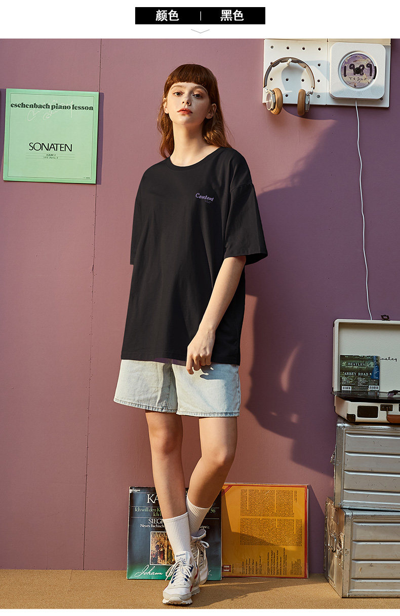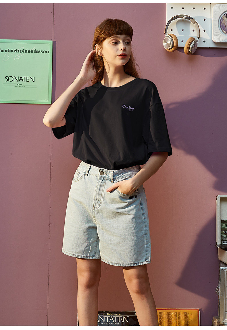 Тан Лев 2021 Лето новая коллекция Ниша дизайна белый короткий рукав Футболка женская ins тренд круглый воротник чистый хлопок Свободный черный