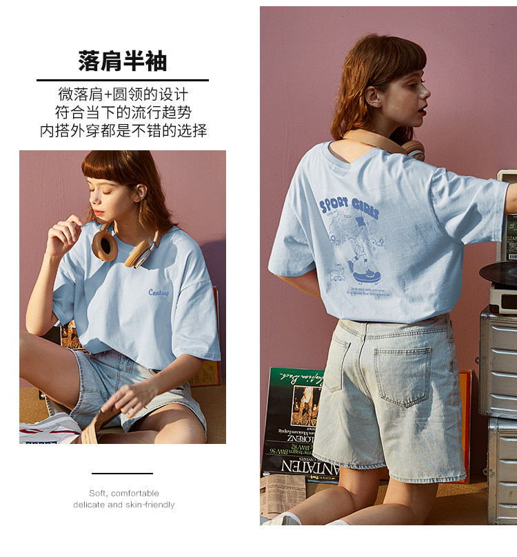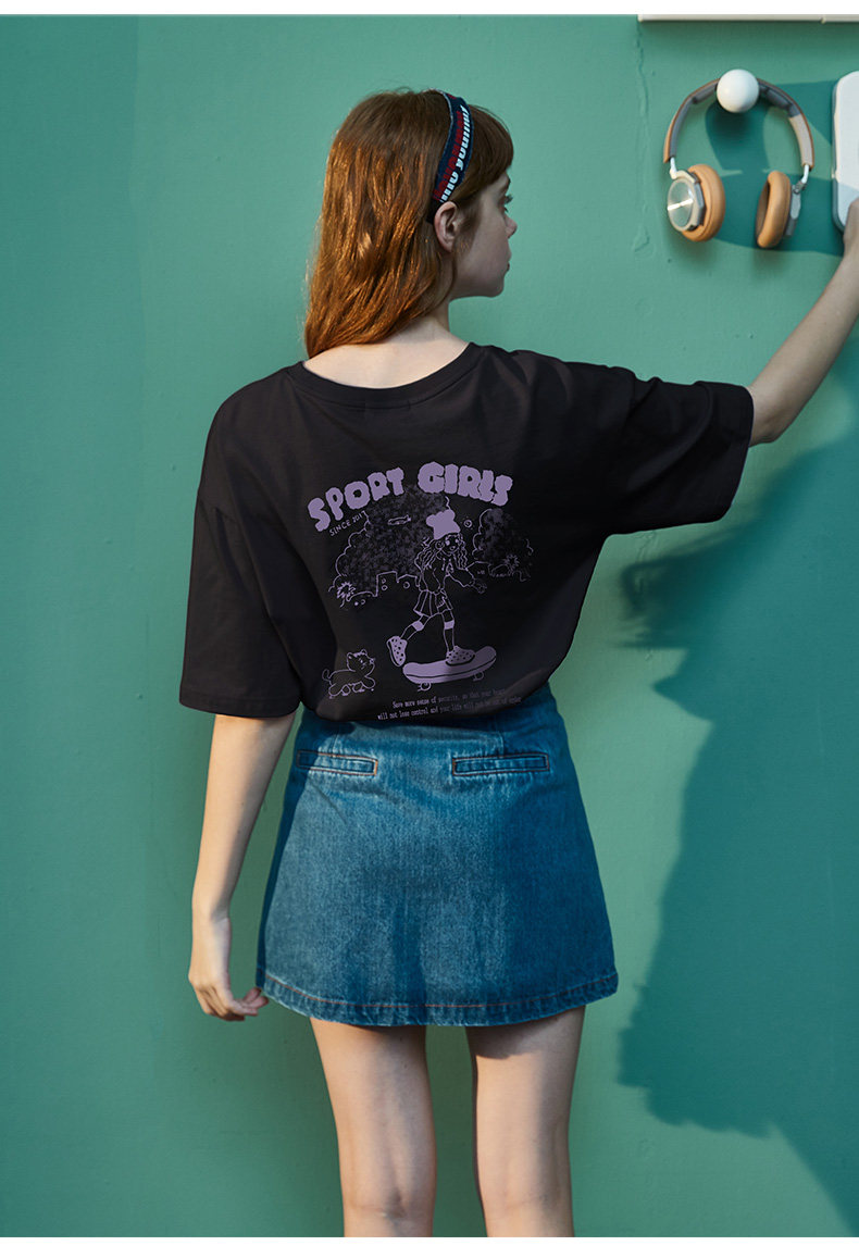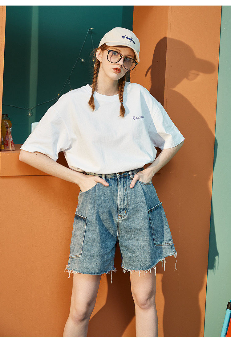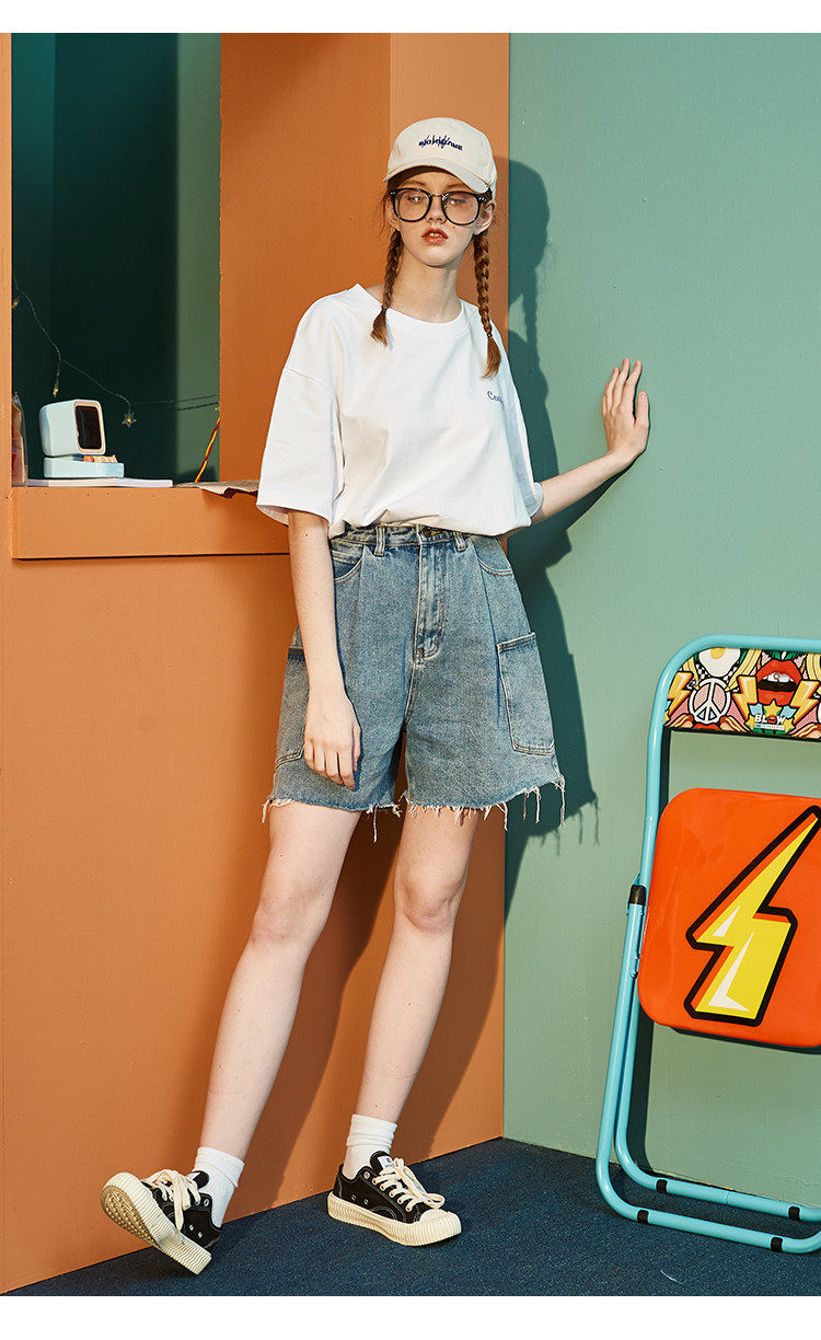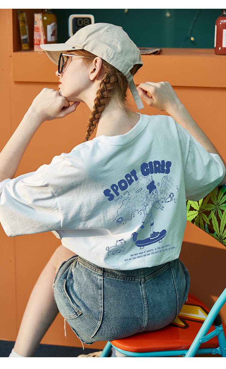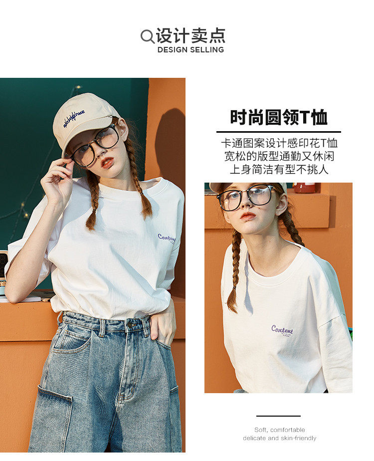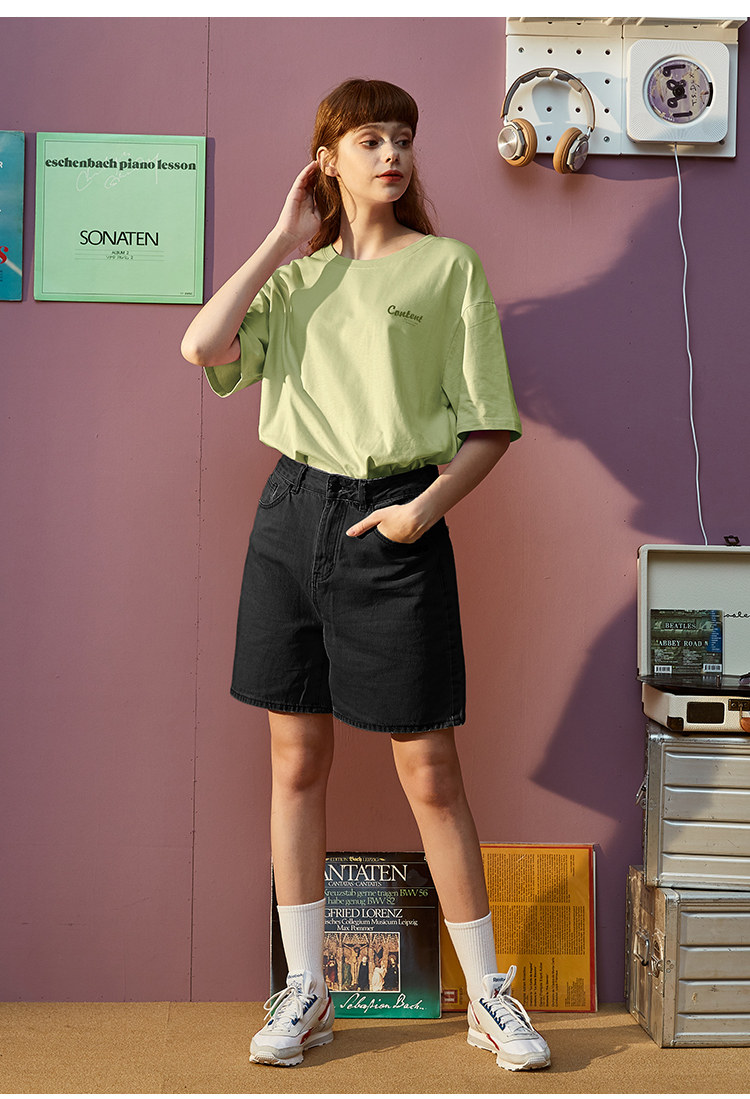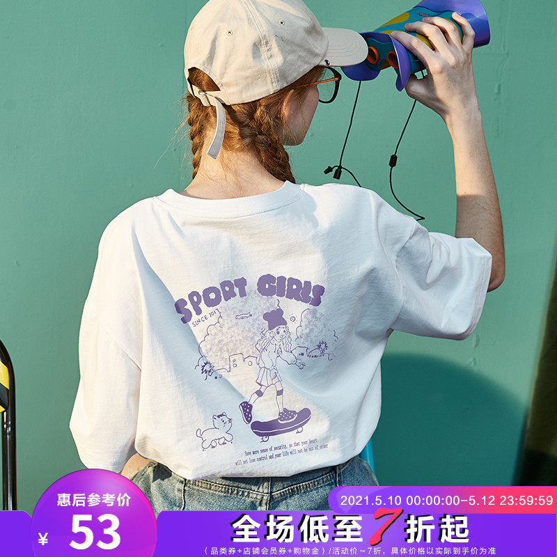 Тан Лев 2021 Лето новая коллекция Ниша дизайна белый короткий рукав Футболка женская ins тренд круглый воротник чистый хлопок Свободный черный