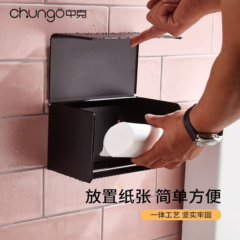 Повышенная общедоступная туалетная бумажная коробка -стена -нависшая бумажная коробка для тканей без удара из нержавеющей стали черный ванная комната