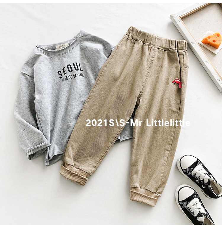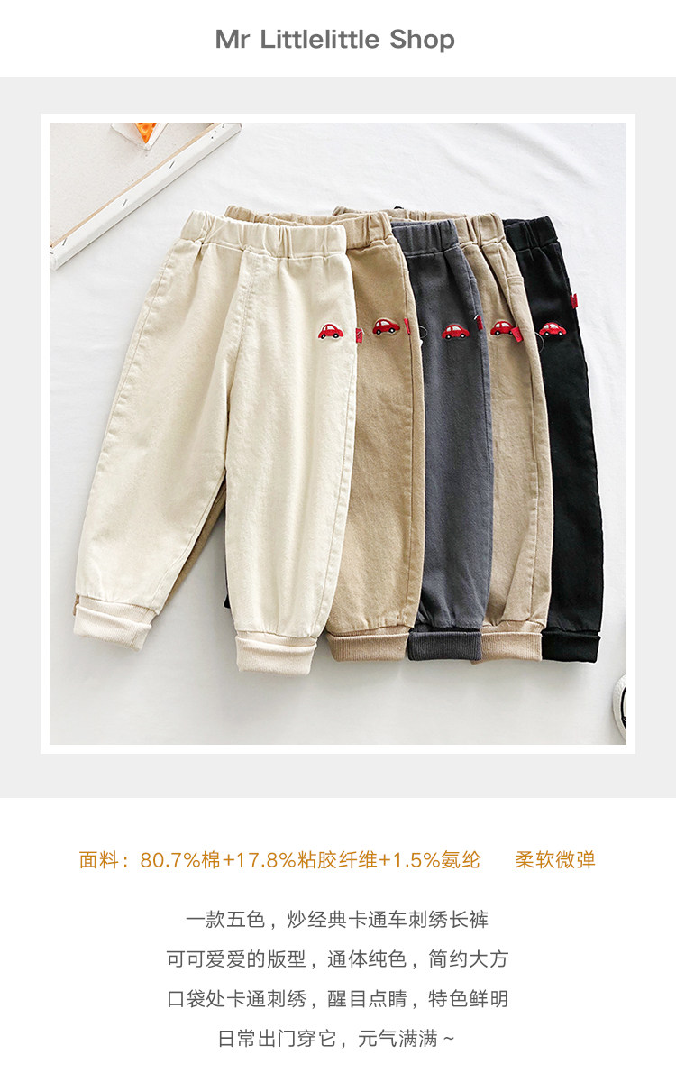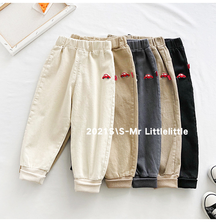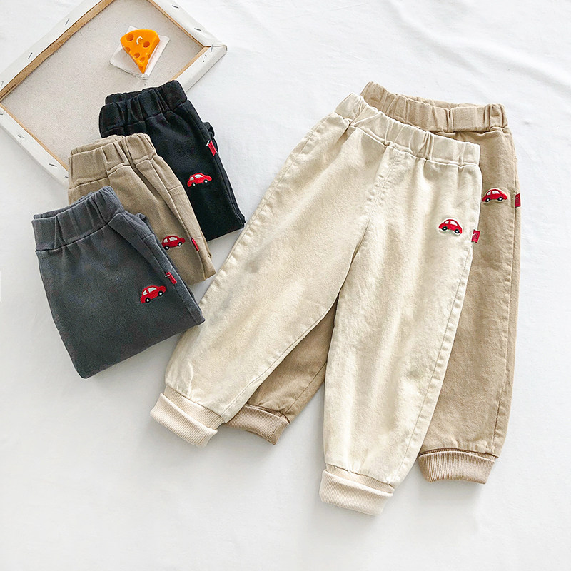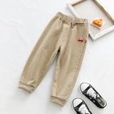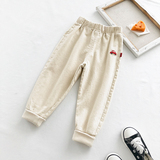 Детские Мультфильм вышивка брюки демисезонный Штаны мужские и женские ребенок для отдыха Штаны хлопок эластичные детские Спортивные штаны