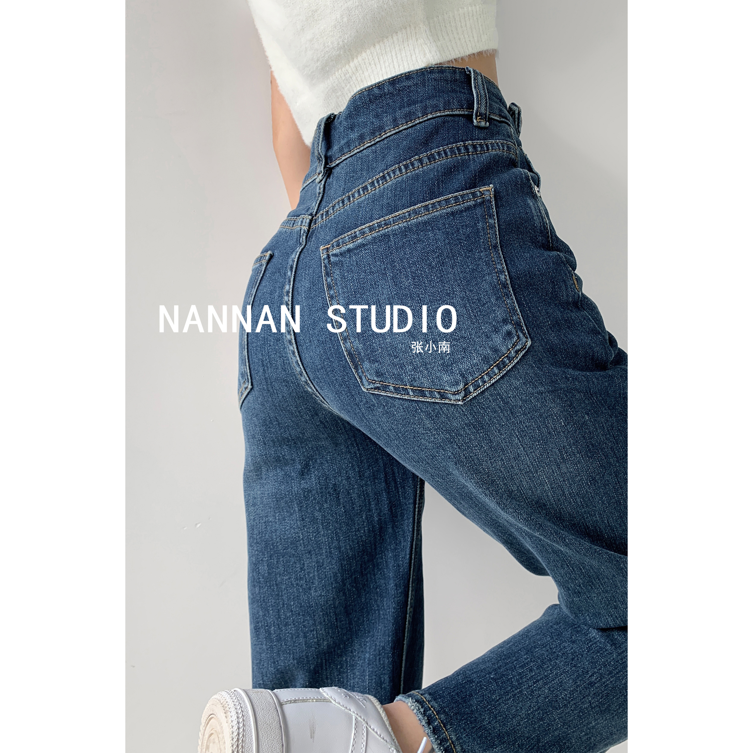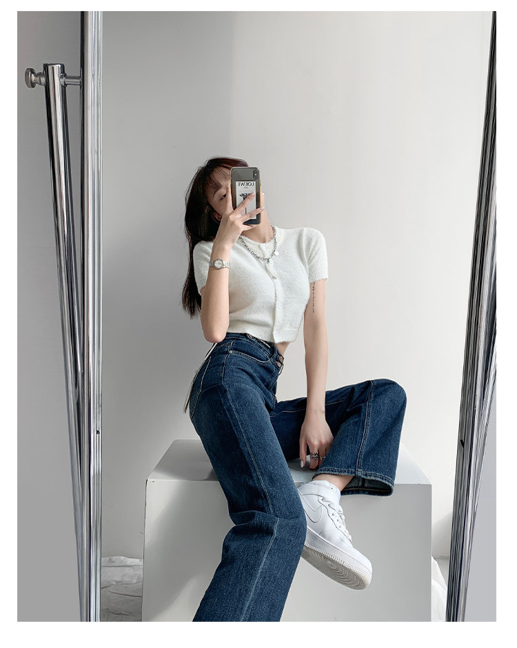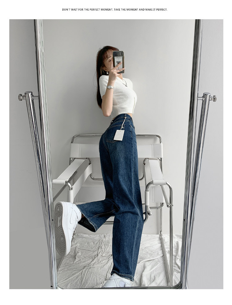 Домашние уличные крошки более ветреные с застежкой Показать талию джинсы Женщины свободные и худые прямые Драпировка брюк высокая Штаны для мытья полов