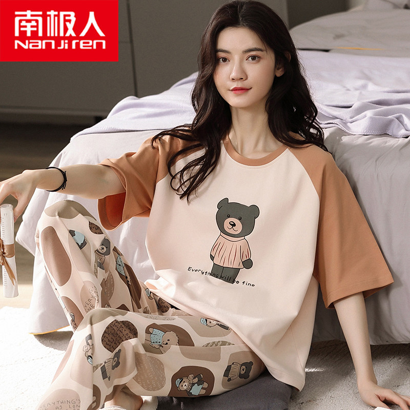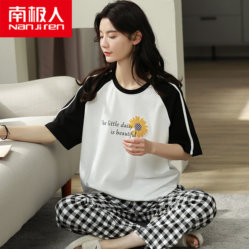 Антарктические пижамы женские 2022 новая коллекция лето чистый хлопок короткий рукав Брюки тонкие стиль Добавить удобрение плюс большой размер Домашняя служба женщина