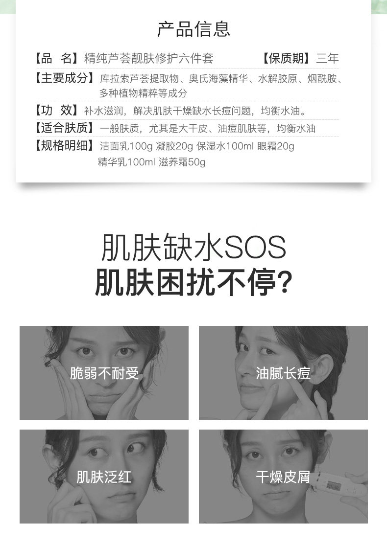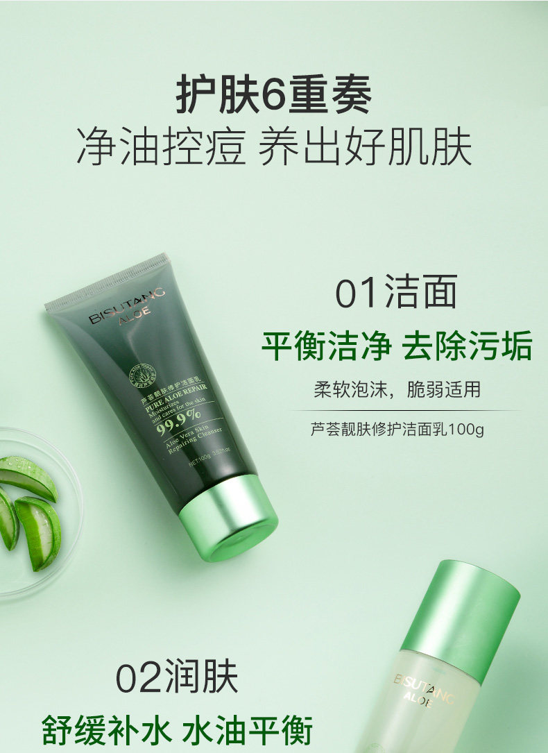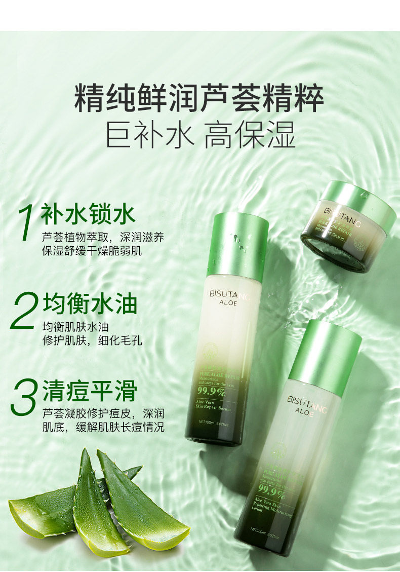 Алоэ вера комплект Водное молоко оригинал Увлажняющий контроль от угрей нефтяной массы термоусадочные поры Косметика ухода за кожей полностью Набор женских студентов