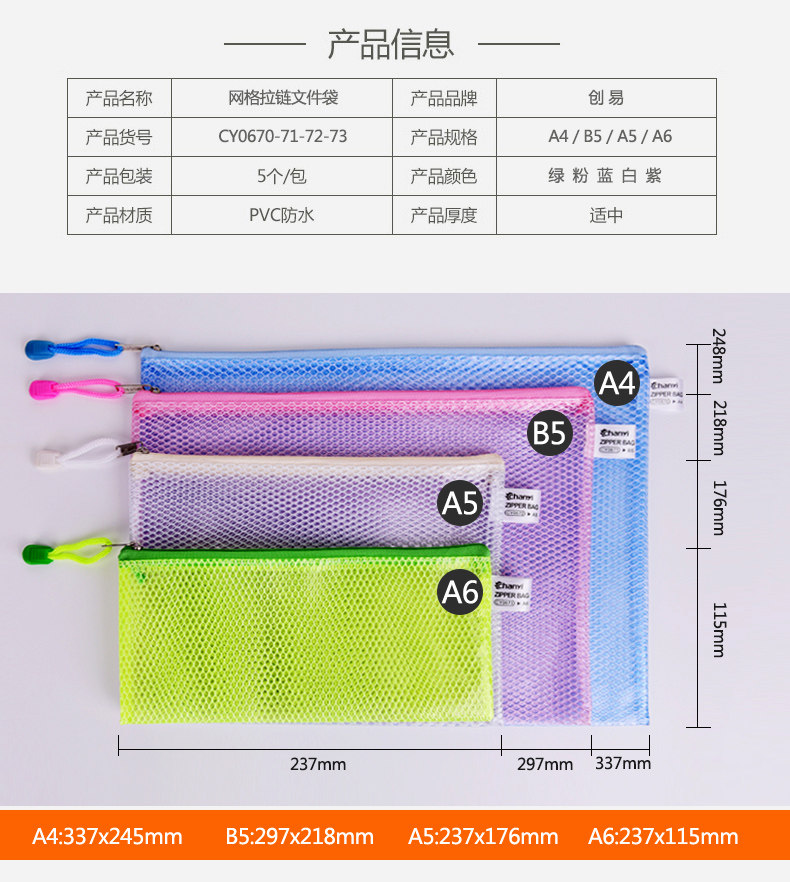 Сумка файла chuangyi a4 прозрачна сетка с замками Сумка A5A6 Офисная информация Сумка мешка B5 Студенческие канцелярские товары тестовая бумага Сумка для хранения бумаги корейский Творческий XiaoQing новый Мешок