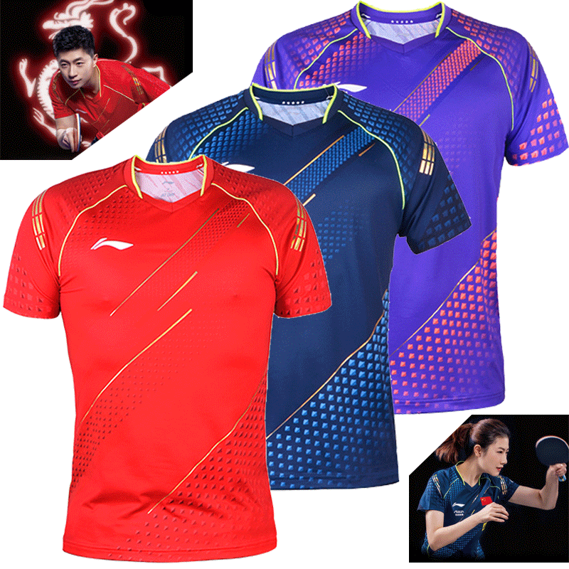 Li Ning Настольный теннис Service 2021 Sportswear короткий рукав верх Штаны мужской Конкурс в гуации обслуживается сухой джерси