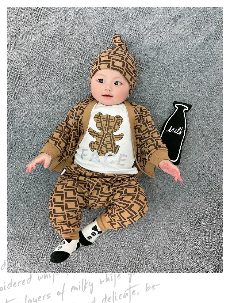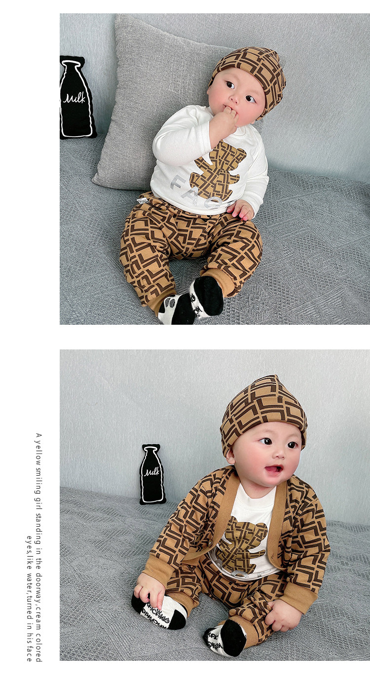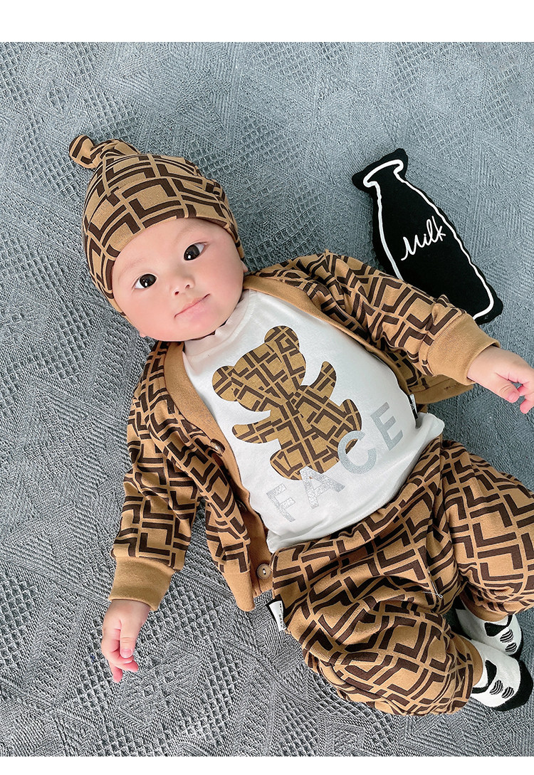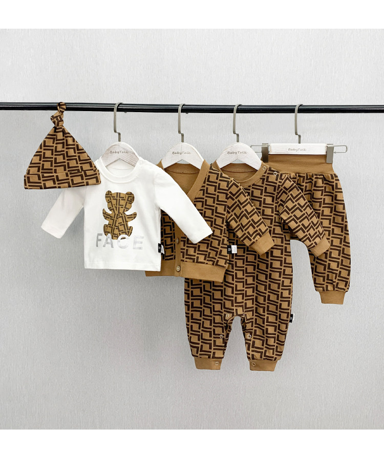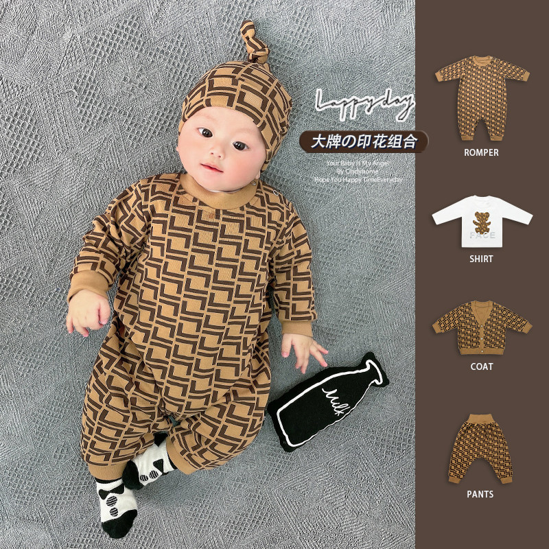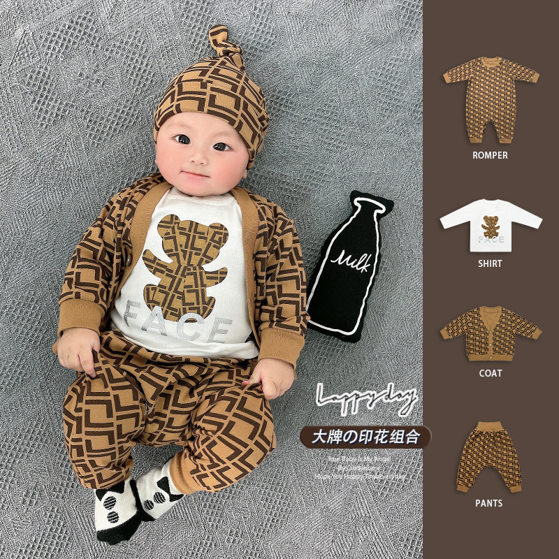 Мультфильм печать модные популярный на младенца одежда чистый хлопок Сотни иностранной луны длинный рукав Катушка демисезонный комплект
