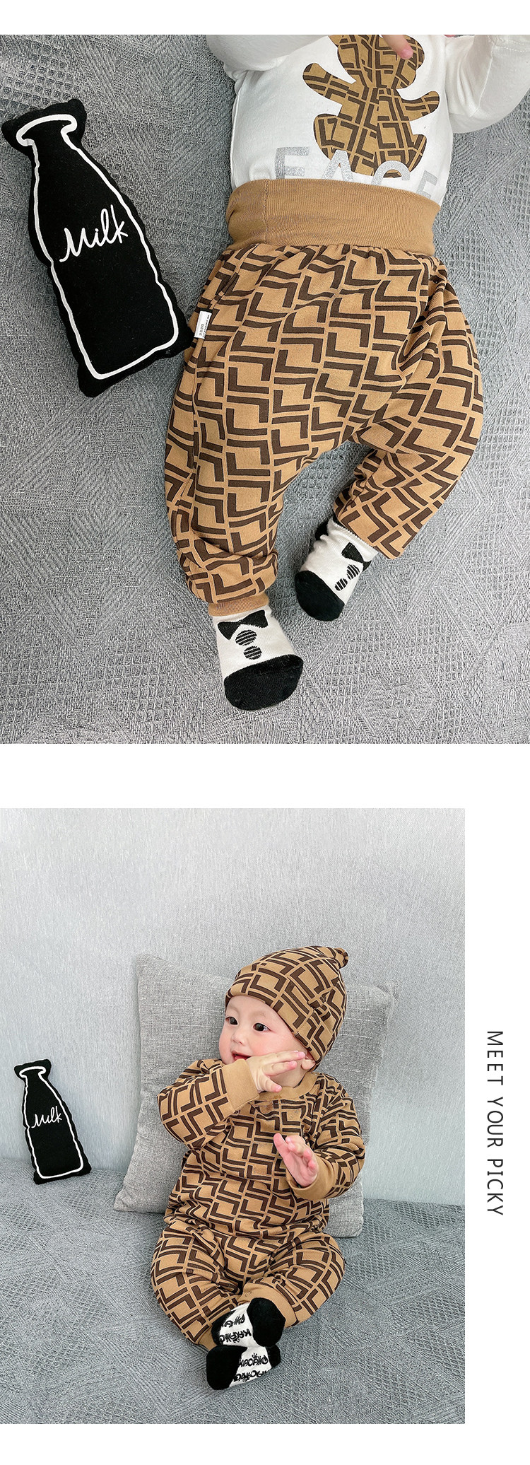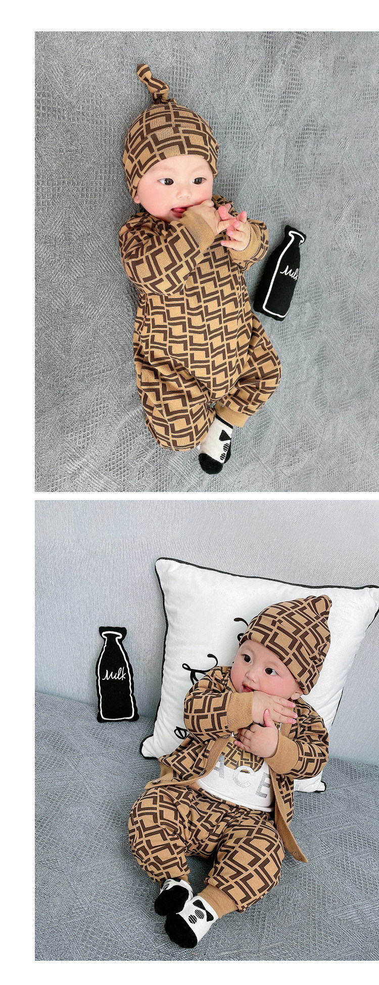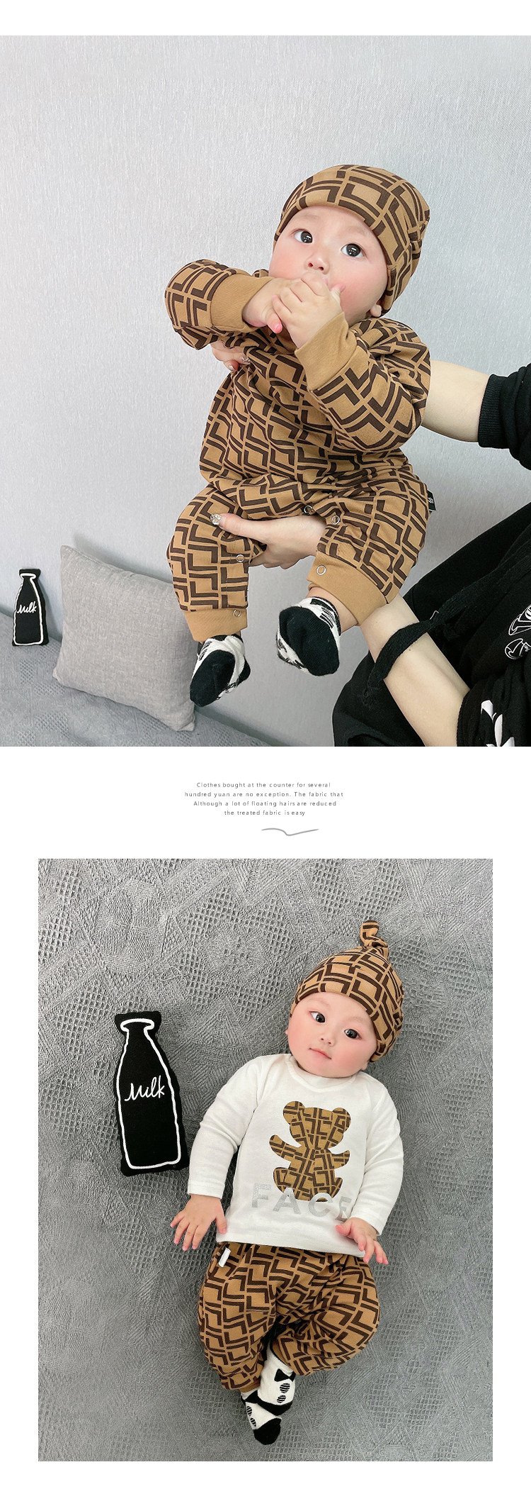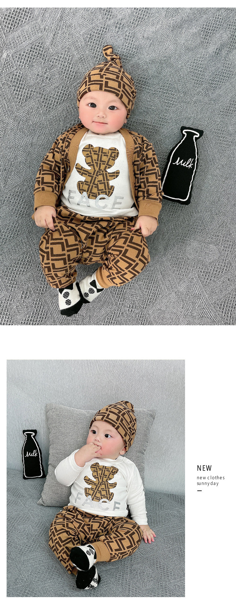 Мультфильм печать модные популярный на младенца одежда чистый хлопок Сотни иностранной луны длинный рукав Катушка демисезонный комплект