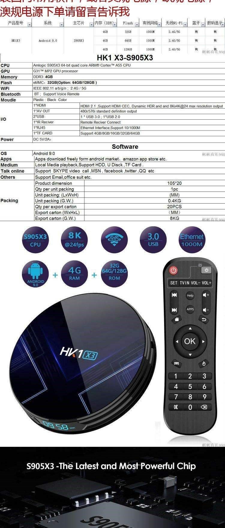 HK1X3 S905X3 Set top box 2. 4г 5G 1000M Bluetooth android tv box