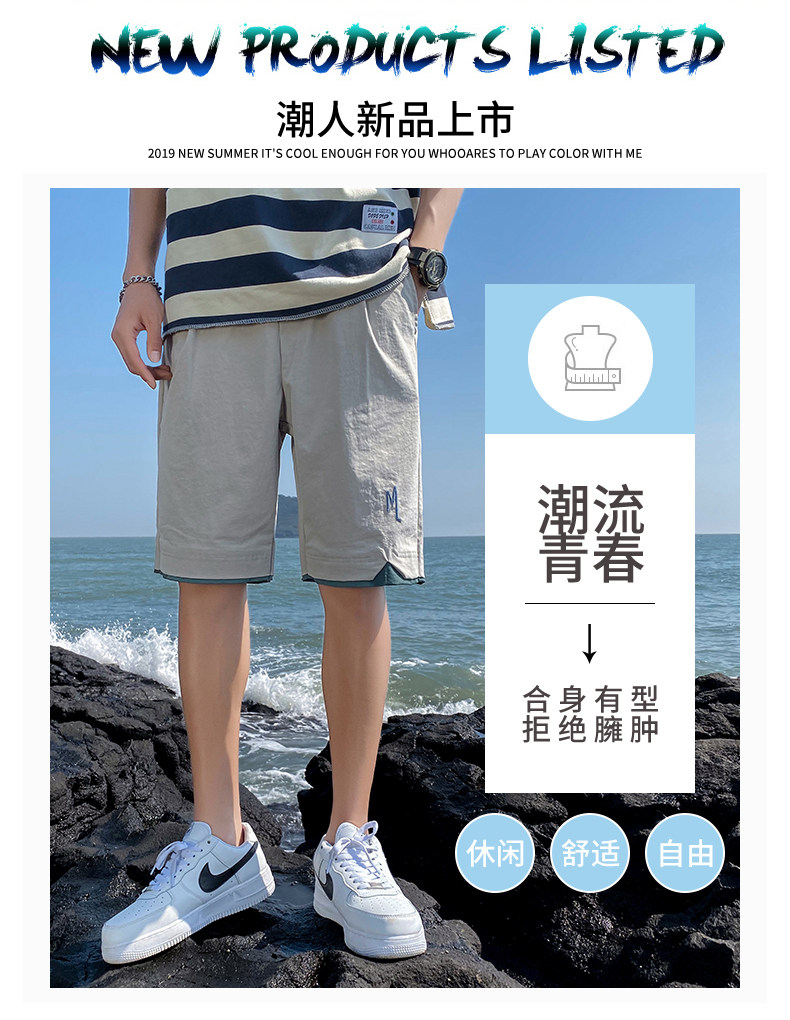 Для отдыха шорты мужской Пять штанов 2021 лето новая коллекция модные Tide Brand Свободный спортивный ледяной шелк тонкий стиль Штаны