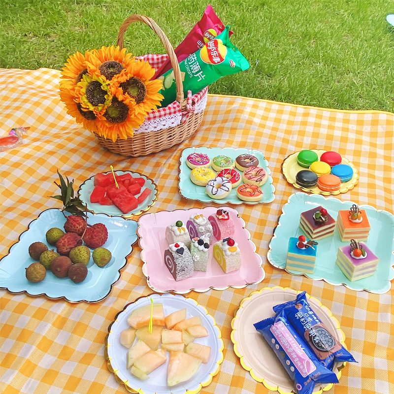 Одноразовая посуда пикник для вечеринок поставки торт твердый бумажный тарелка большая посуда тарелка для весеннего тура комплект Готовка