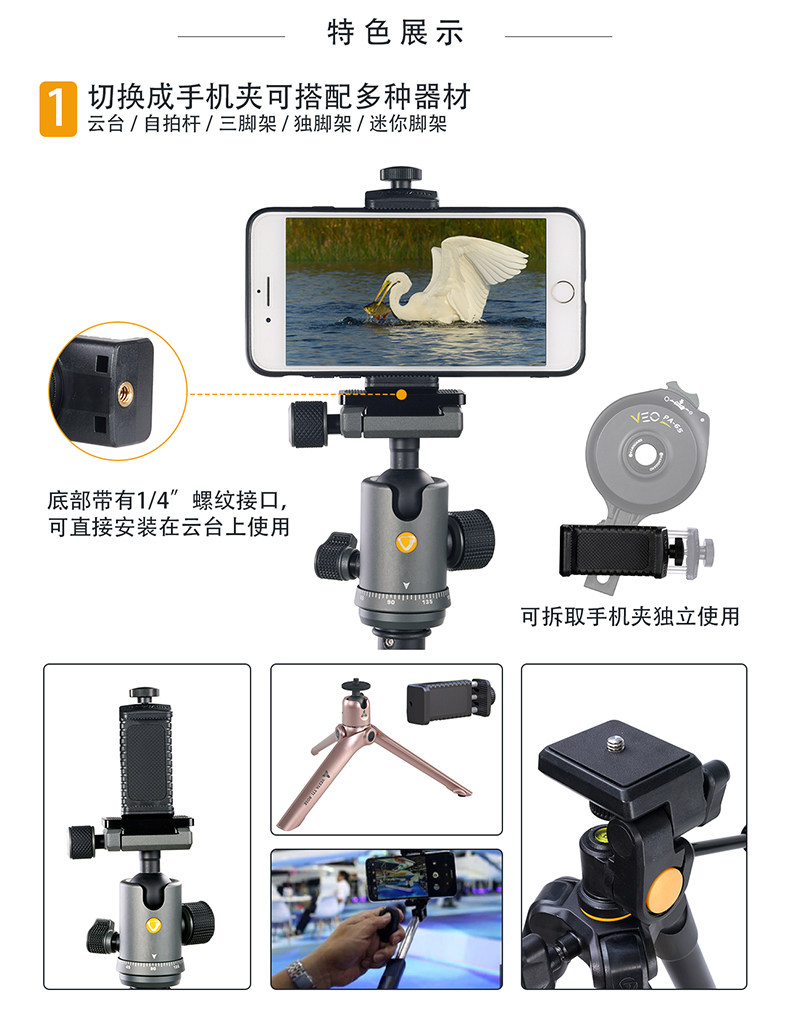 Jiajia Veo PA65. один Двойная трубка зеркало Микроскопический зеркало Возьмите трубку Clipper съемки видео кронштейна