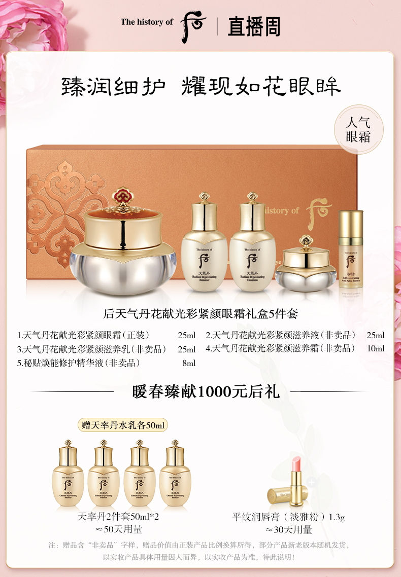【 товар в наличии быстро достичь】WHOO, погода, Даньхуа цвет Плотный крем для глаз подарочная коробка 5 наборы Ингредиент