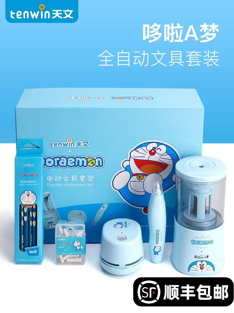 Дораемон Канцтовары комплект Подарочная коробка полностью автоматическая Точилка детские Электрический ручка ножом автоматическая Ручка ножа начальник школы студент первого класса шесть детские ПЕСТИВАЛЬ Учебные материалы пакет