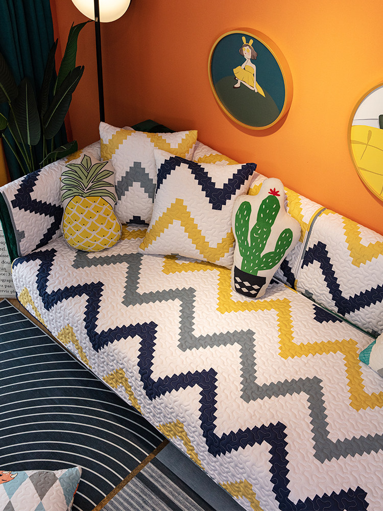 Северные геометрические четыре сезона Диван колодки подушки полностью хлопок чистый хлопок Диван установлен накладка нескользящие диван корпус Ткань может быть очищена