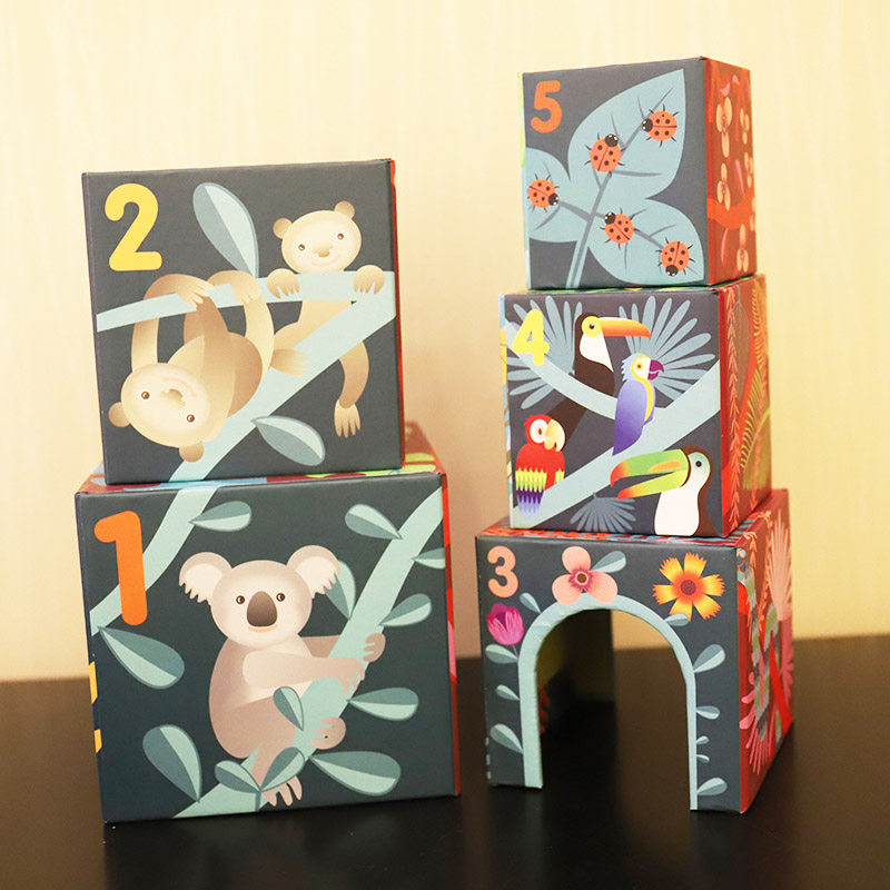Djeco детские Джунгли животных корпус детские Головоломка игрушечный слой слой стог 1-2 года старая суперпозиция чашка стека раннего образования