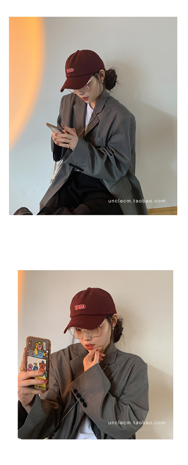 Сеть красный Имя прилива бордовый Бейсболка женский корейская версия Весна, лето, мягкий топ, соевая крышка