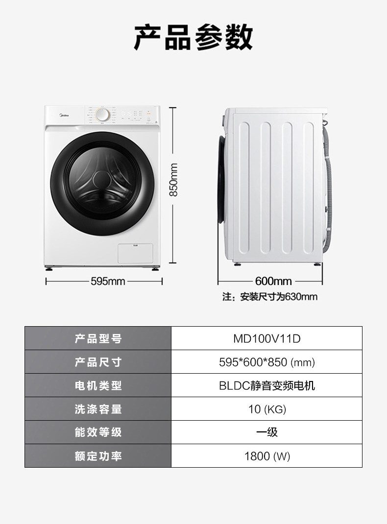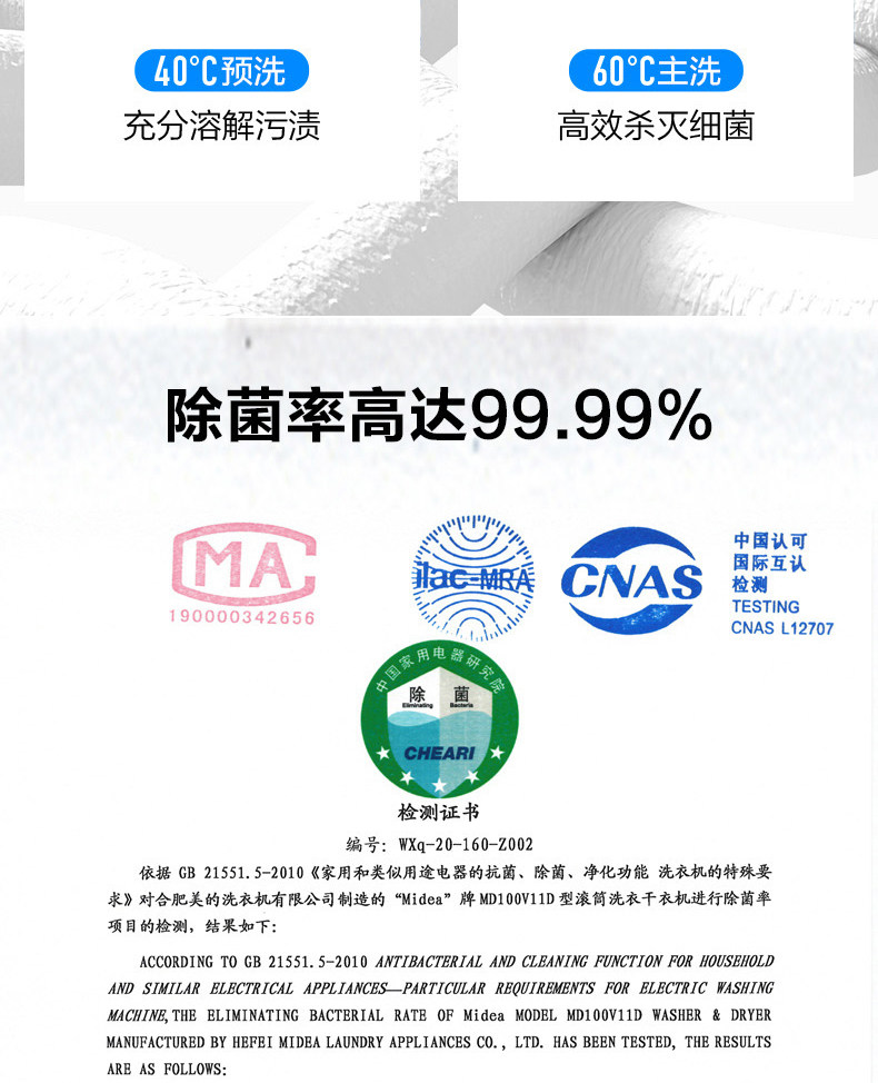 Midea 10 кит.фунт Стиральная машина KG полностью автоматическая Изменение дома частота Барабанная стирально-сушильная машина MD100V11D