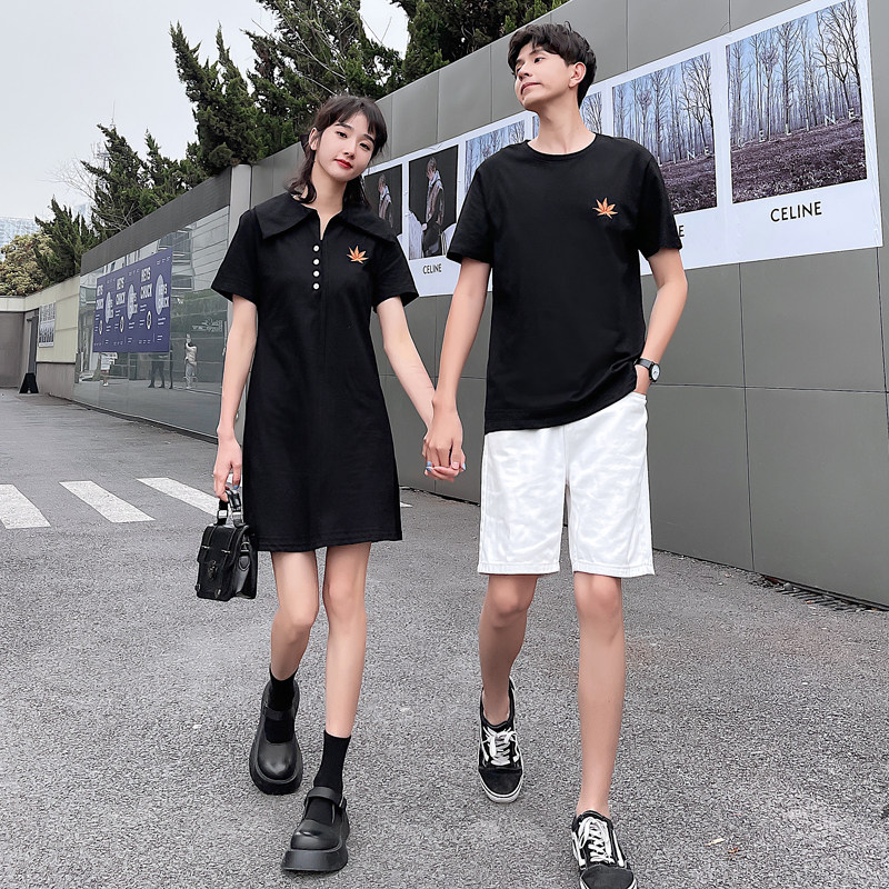Для влюбленной пары Пакет 2021 летнее платье новая коллекция корейская версия Молодой дизайн поверхностный короткий рукав верх Небольшой черный юбка комплект женский