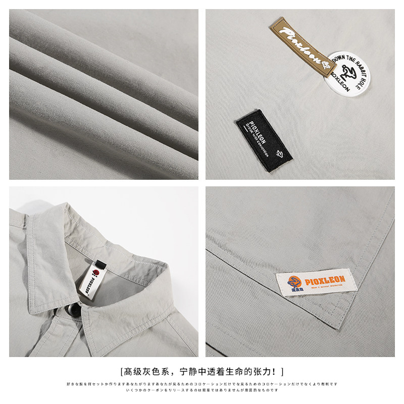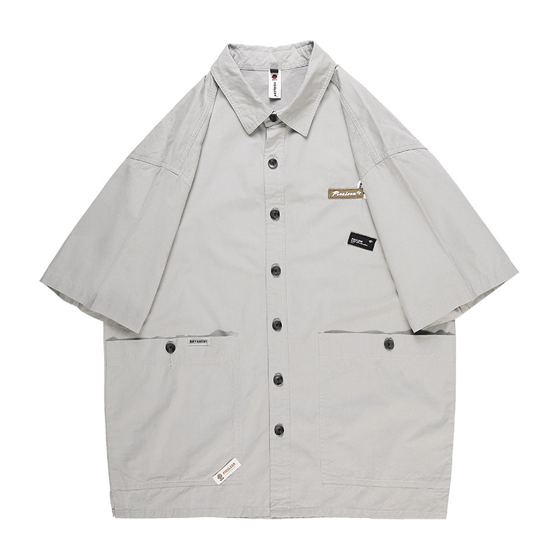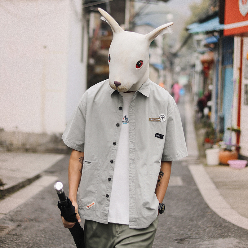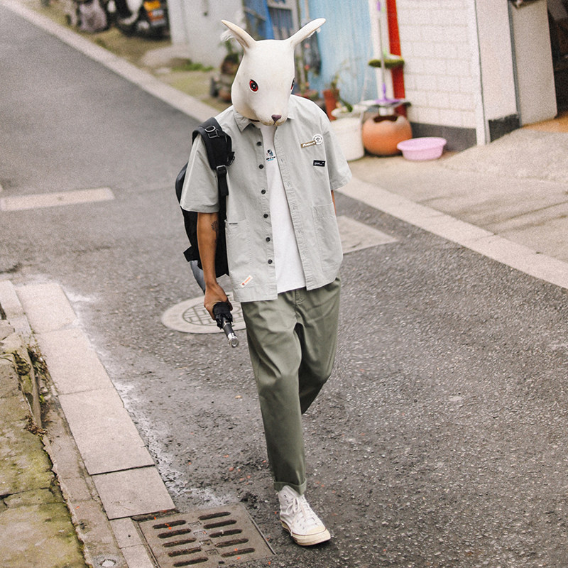 Кролик домодельный летний свободный сплошной цвет для отдыха короткий рукав молодежный Инструмент жакет сорочка Приливная карта мужской рубашка куртка