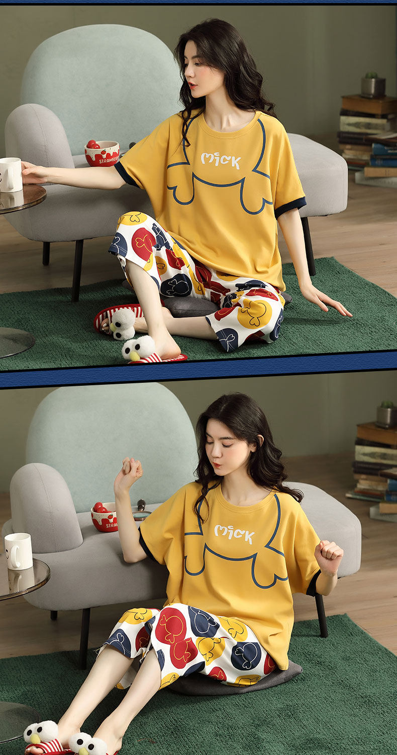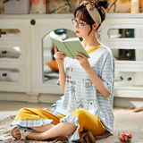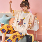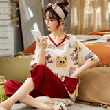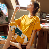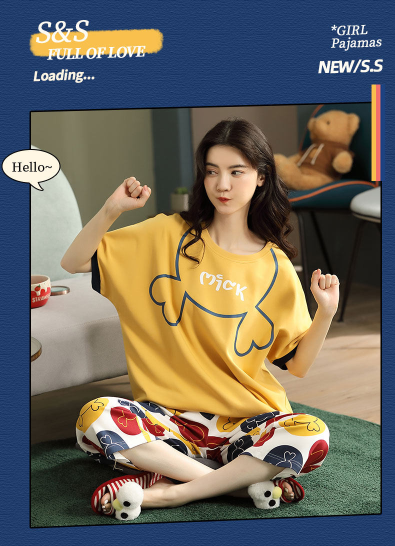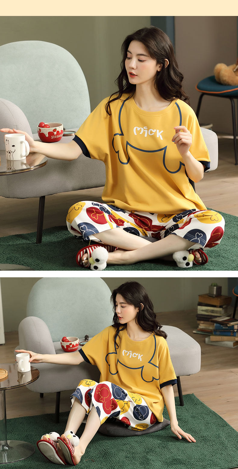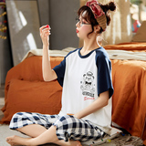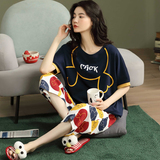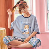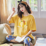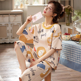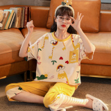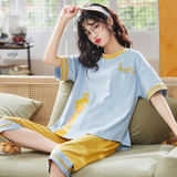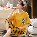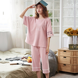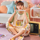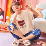 Летняя пижамас женский чистый хлопок короткий рукав милый 7 Штаны комплект Свободный стиль ученик молодежный демисезонный Трексуит