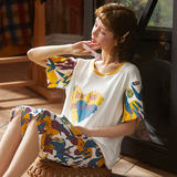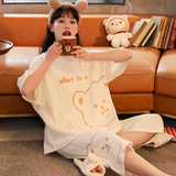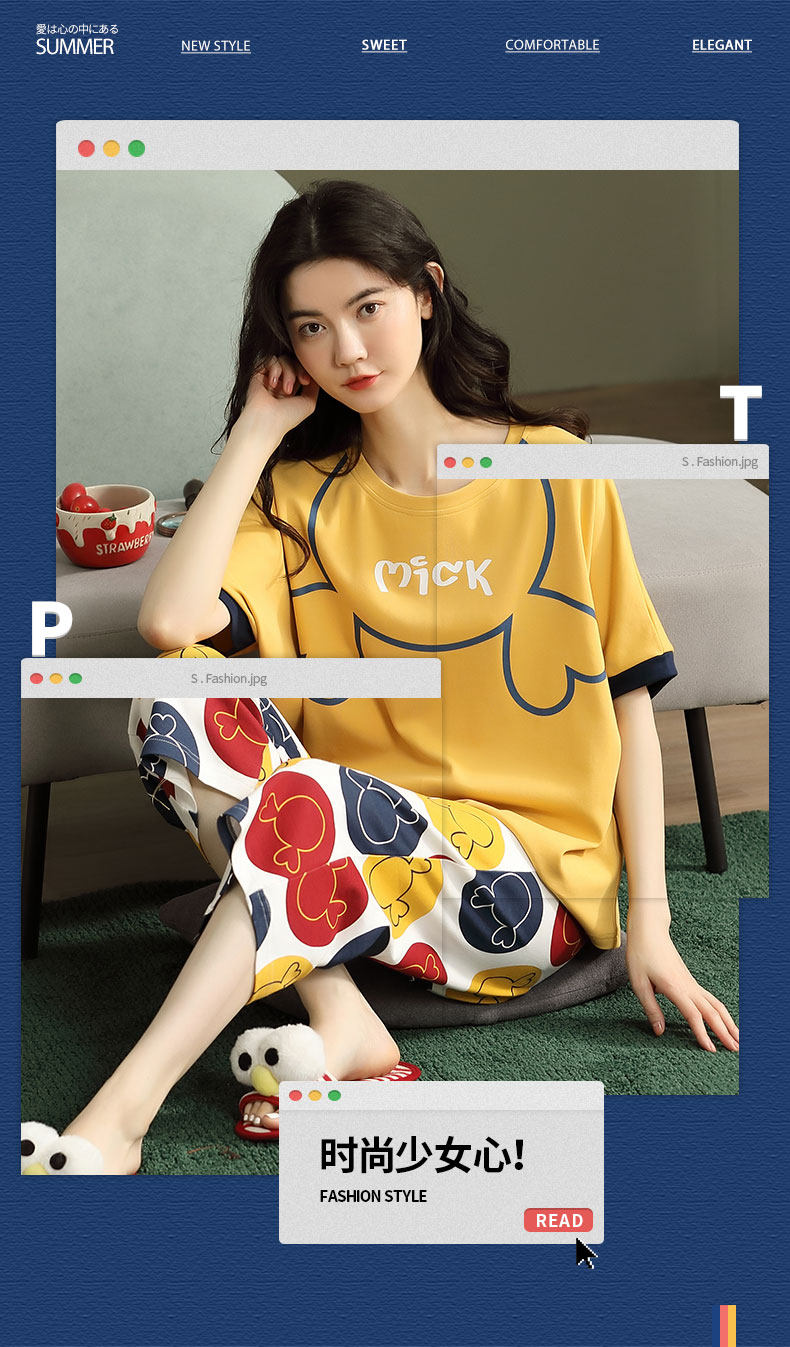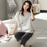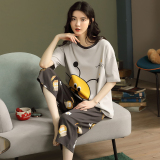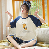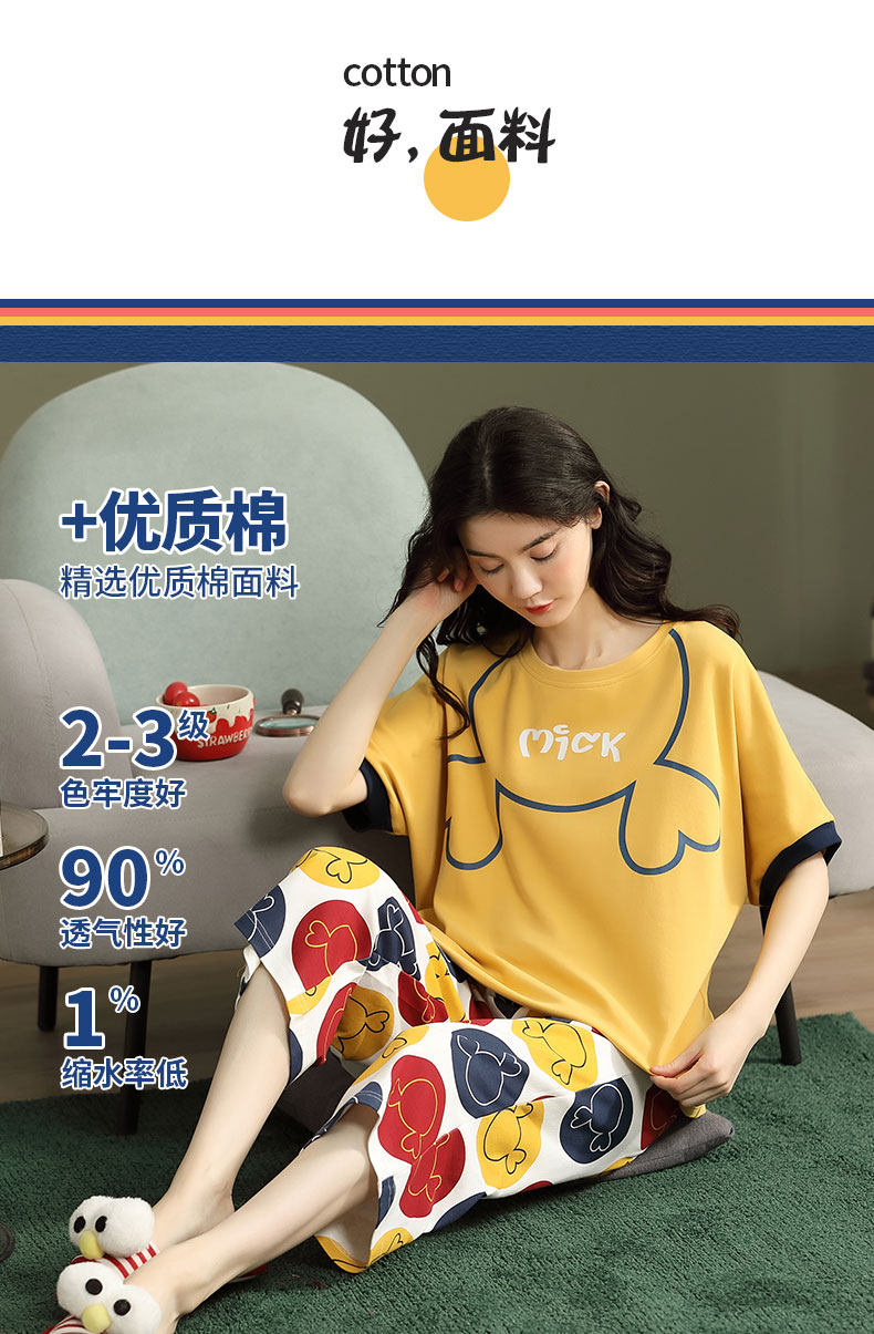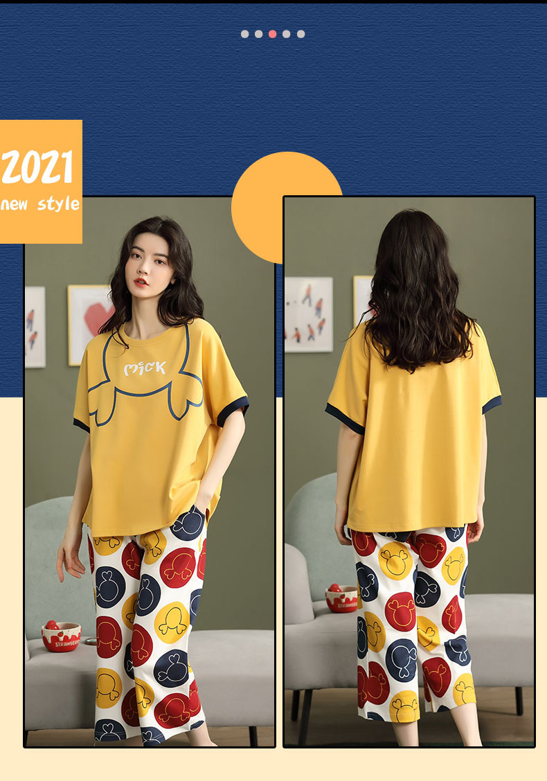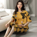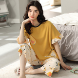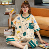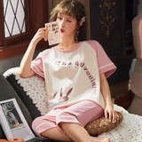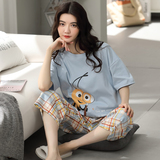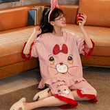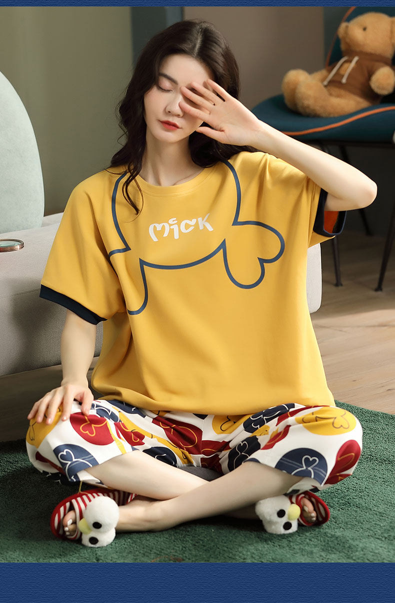 Летняя пижамас женский чистый хлопок короткий рукав милый 7 Штаны комплект Свободный стиль ученик молодежный демисезонный Трексуит