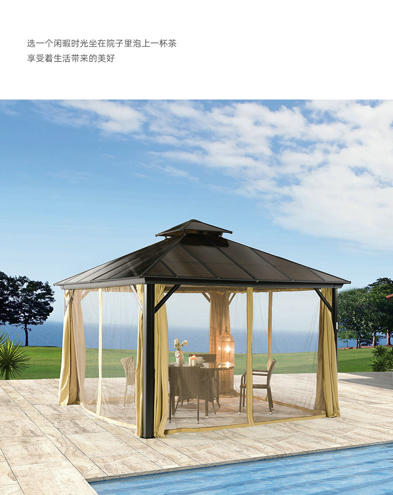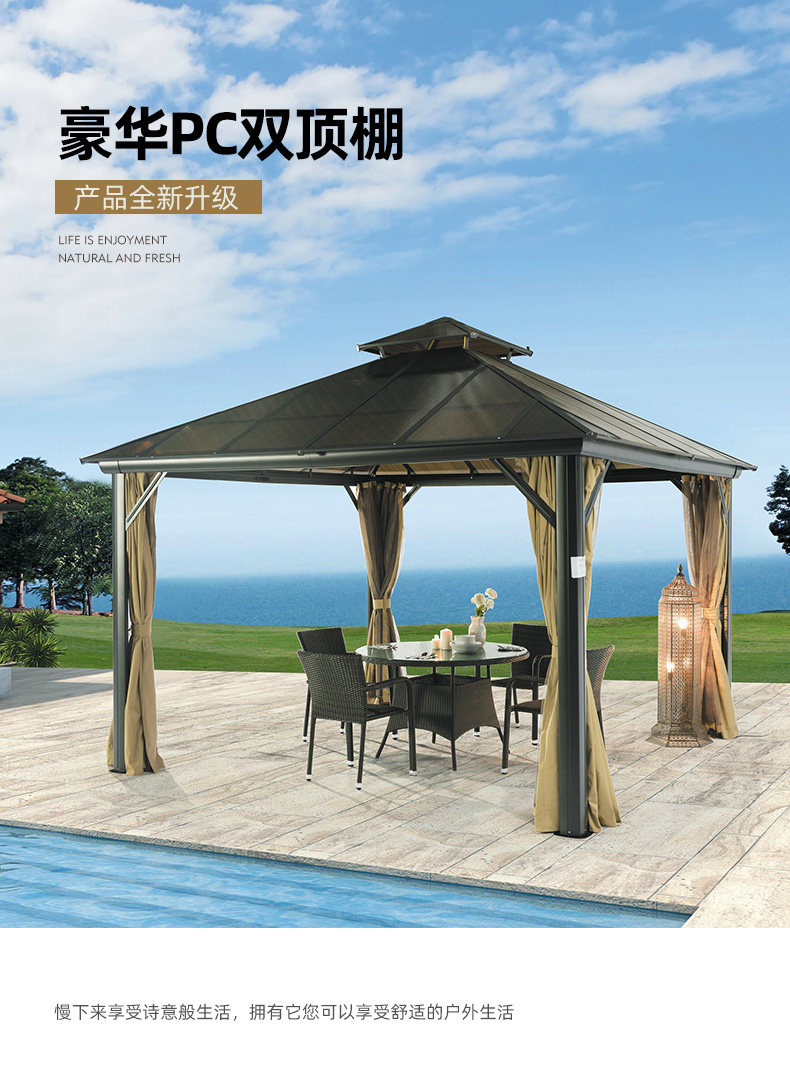 Jingou Outdoor Court беседка на открытом воздухе алюминий Металлическая павильонная терраса сада вилла палатка простая для отдыха Четырехсторонний павильон
