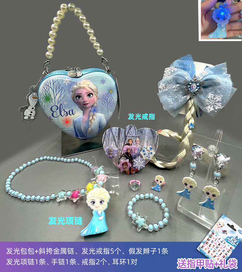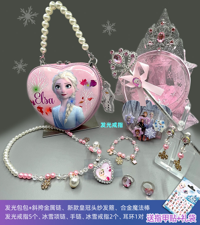 Детские Светиться пакет пакет Ювелирные изделия для ожерелья головного ухода комплект Лед и снег для маленькой принцессы Айша на девочку Ювелирные украшения корона подарок на день рождения